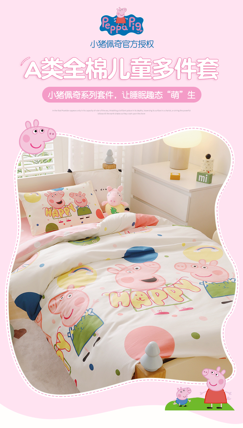 当前位置: 91家纺网 > 商品网购 > 婴童用品 > 婴童床品套件 > 鱼宝 2023新款13372全棉小猪佩奇授权幼儿园多件套 佩奇花园