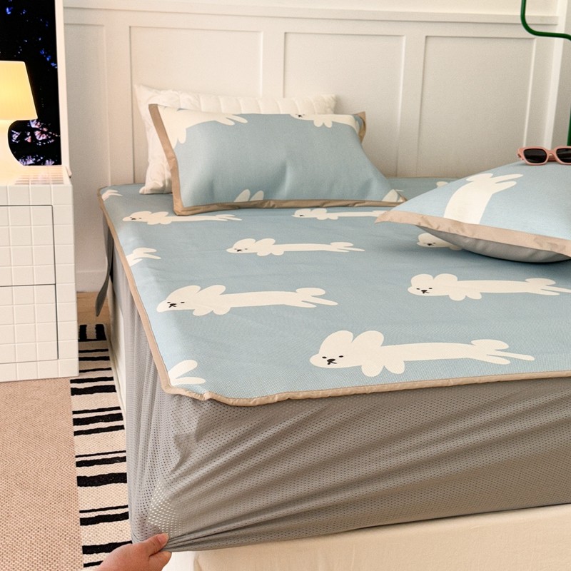 商品名称:昔可 2023新款高端数码冰藤席床笠款凉席 蓝底兔