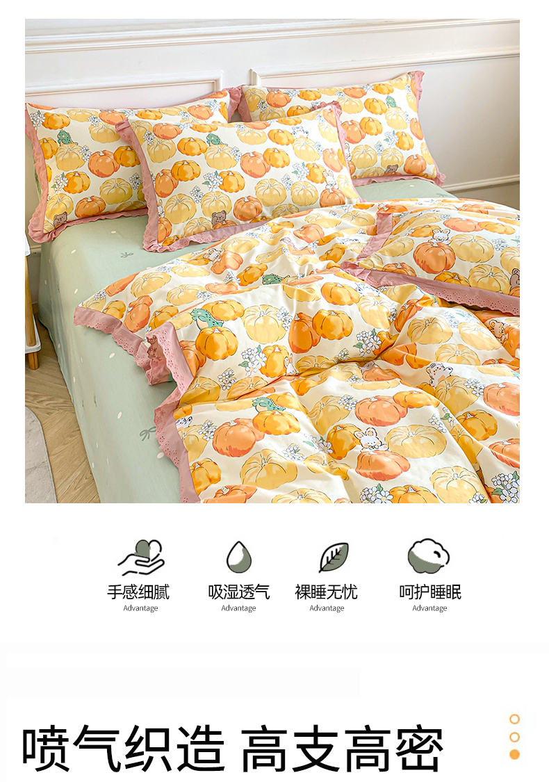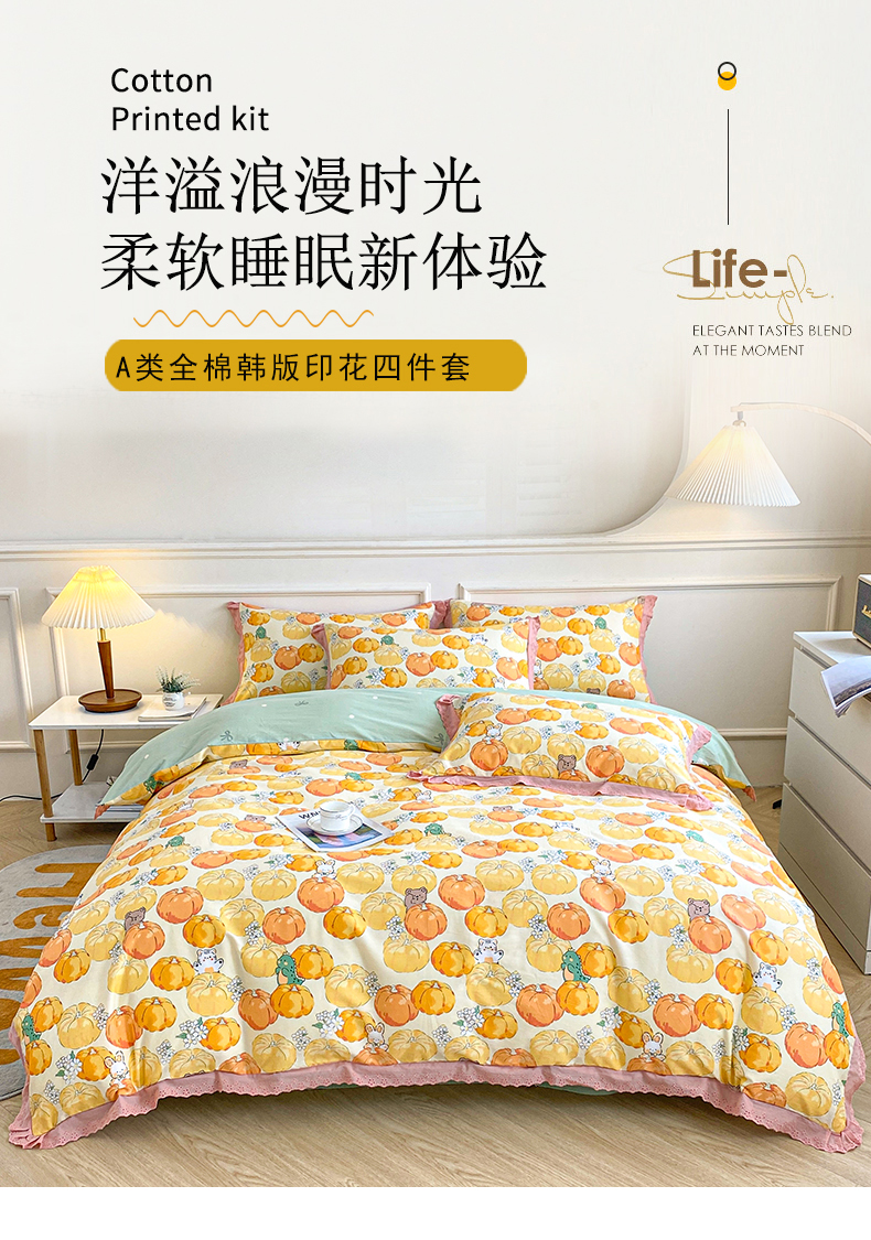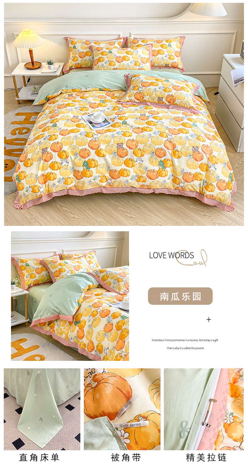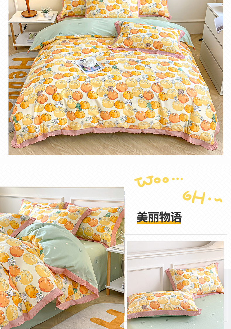 当前位置: 91家纺网 > 商品网购 > 床品套件 > 四件套 > 全棉普通四件套 > 宇彬20223年新款13372全棉韩版刺绣花边和印花花边四件套和单被套 刺绣花边 南瓜乐园