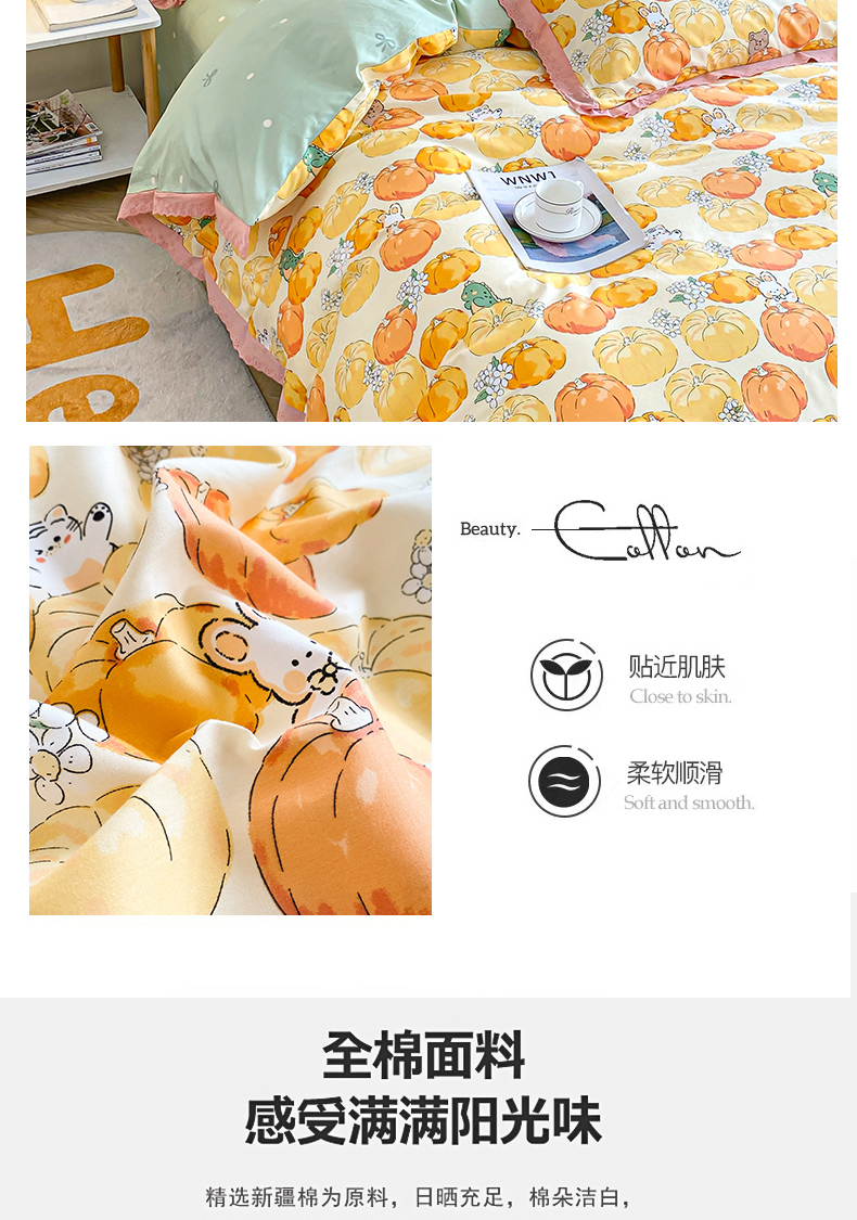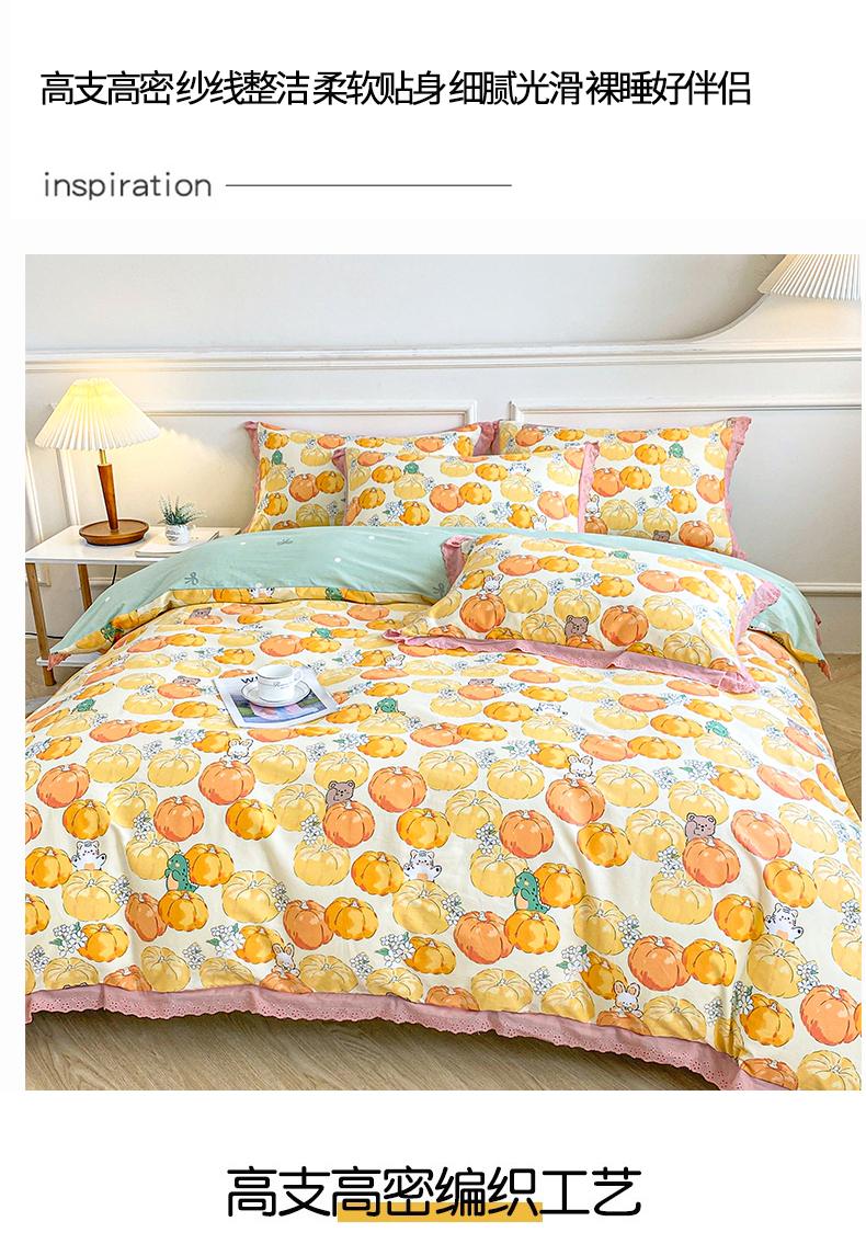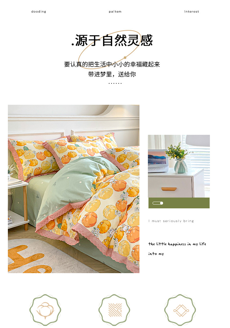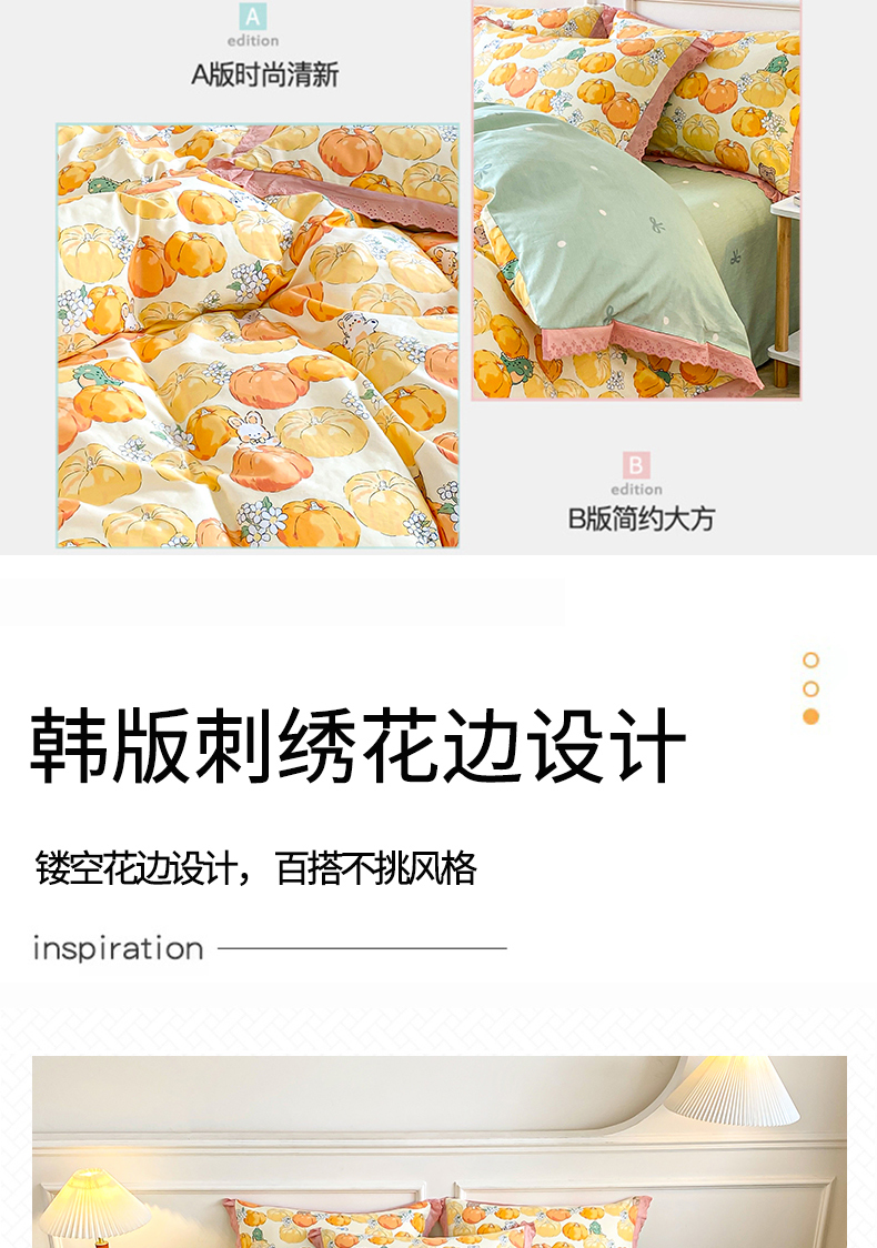 当前位置: 91家纺网 > 商品网购 > 床品套件 > 四件套 > 全棉普通四件套 > 宇彬20223年新款13372全棉韩版刺绣花边和印花花边四件套和单被套 刺绣花边 南瓜乐园