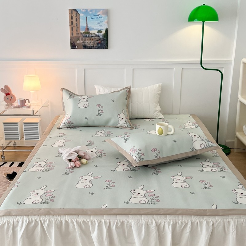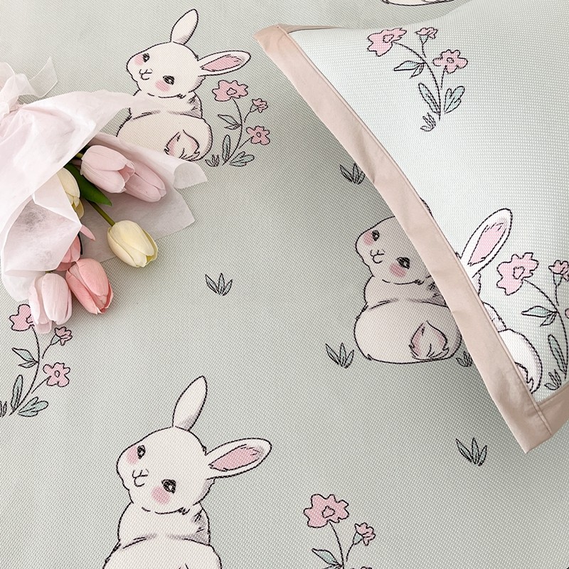 昔可 2023新款高端数码冰藤席床席款凉席 花朵小兔几