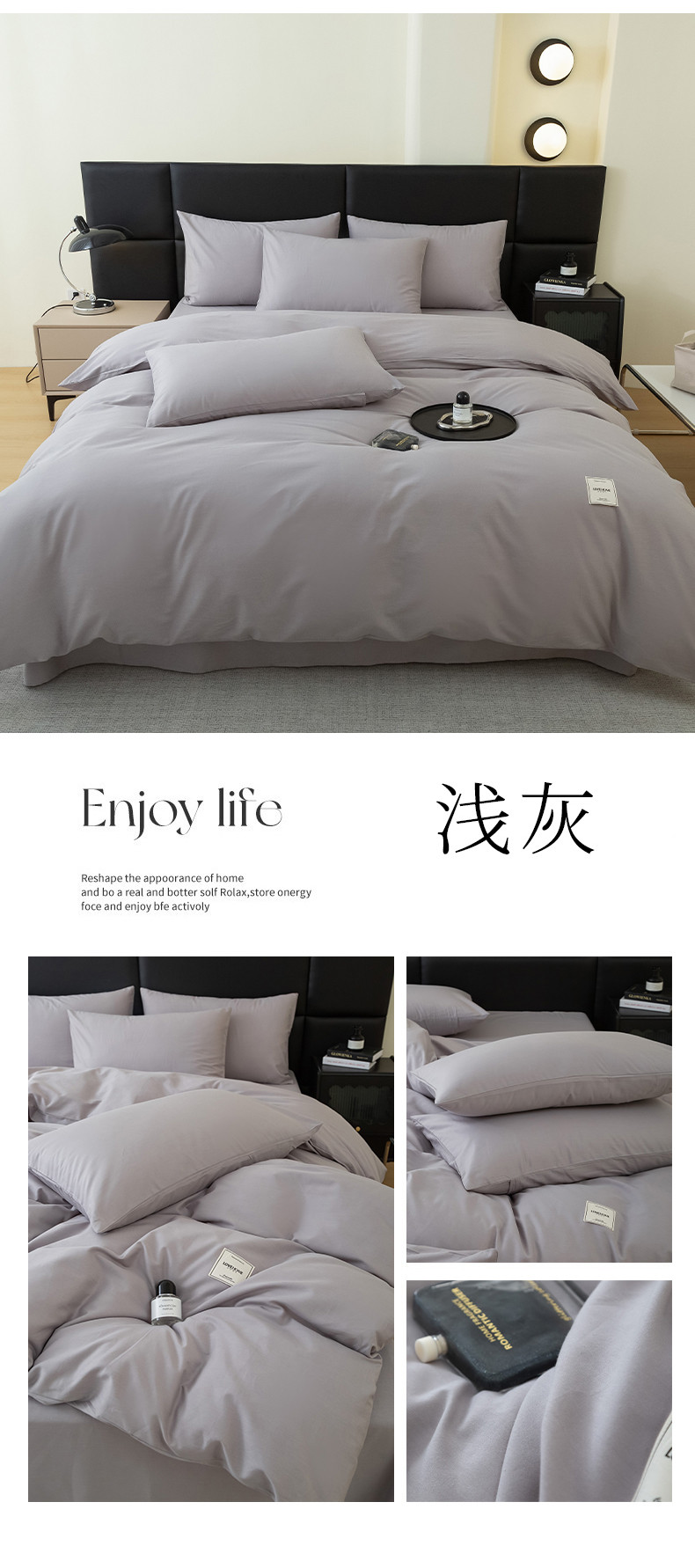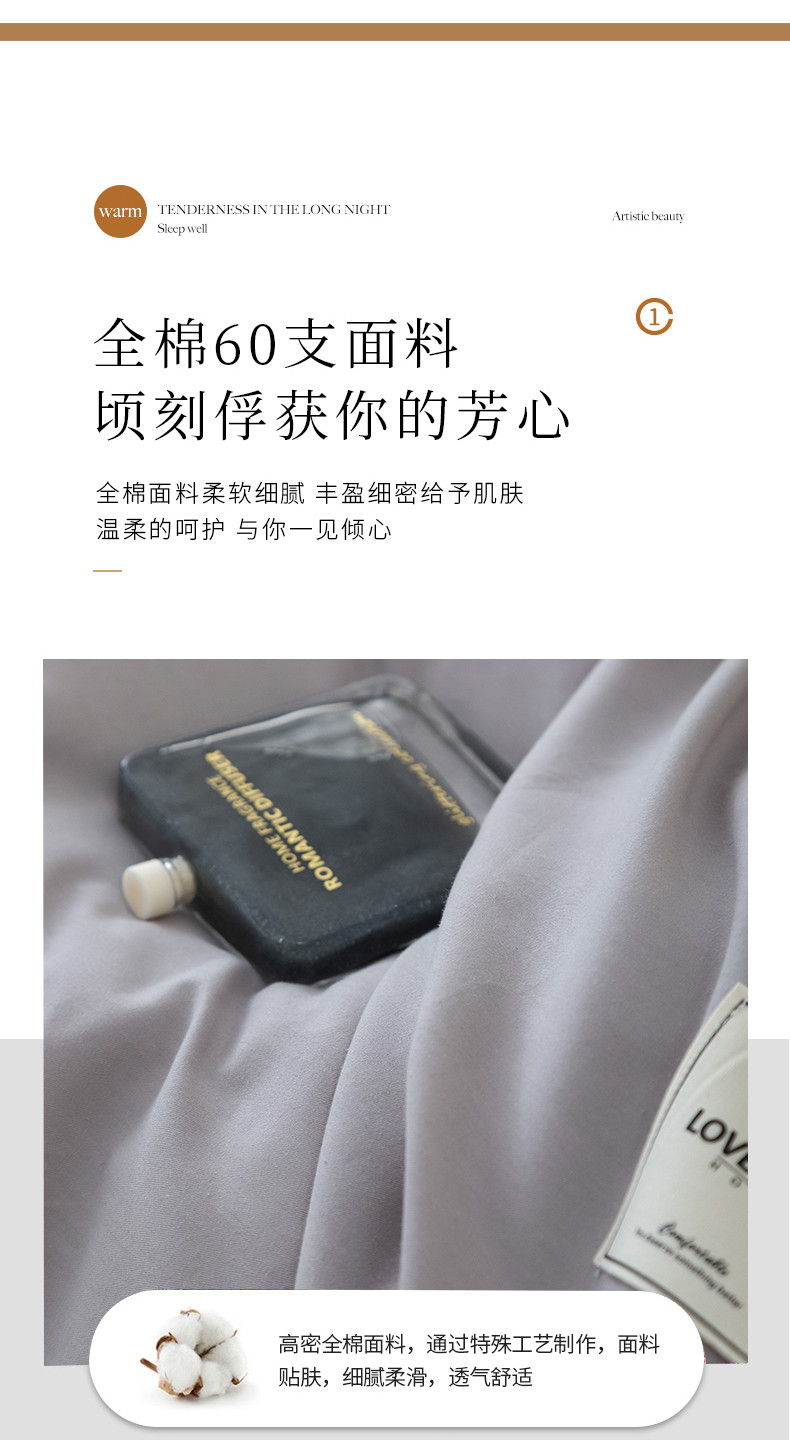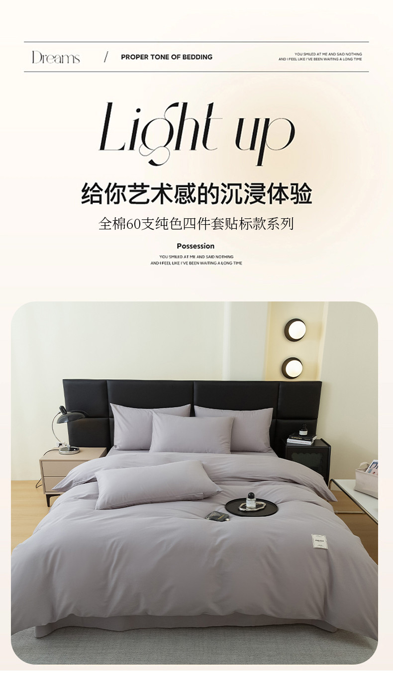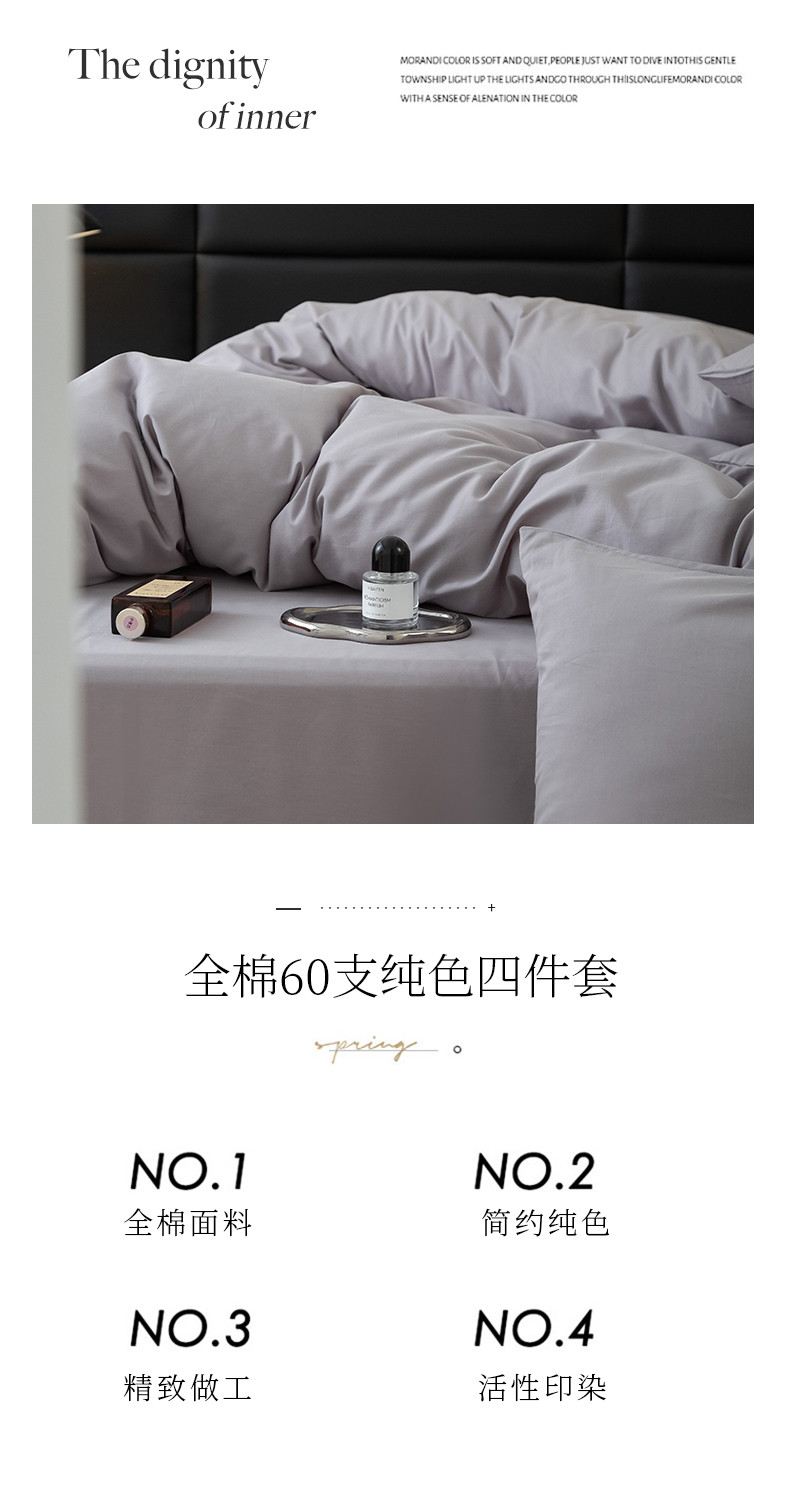商品名称:N先生 2025新款全棉60支纯色四件套贴标款 浅灰