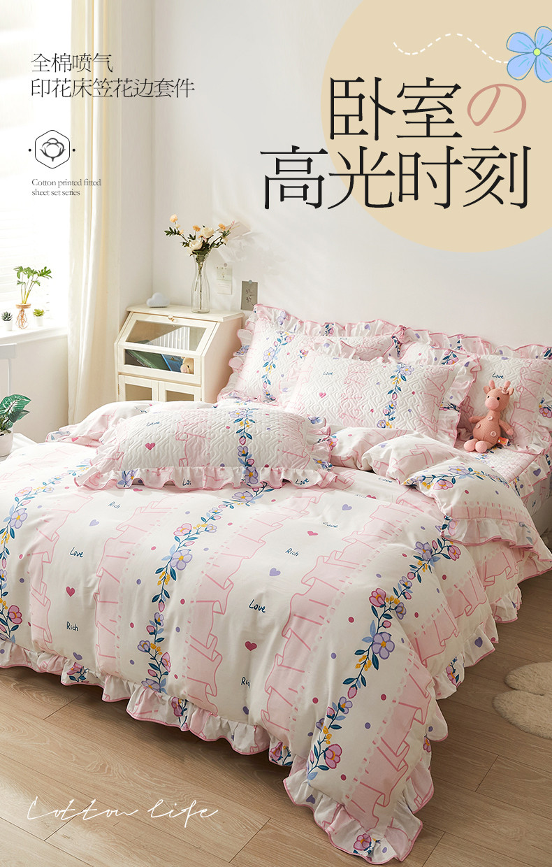 (总)宜凡家纺 2025新款全棉数码印花床裙四件套系列一,静若幽兰,浮云织梦,梦幻花园,陌上花开