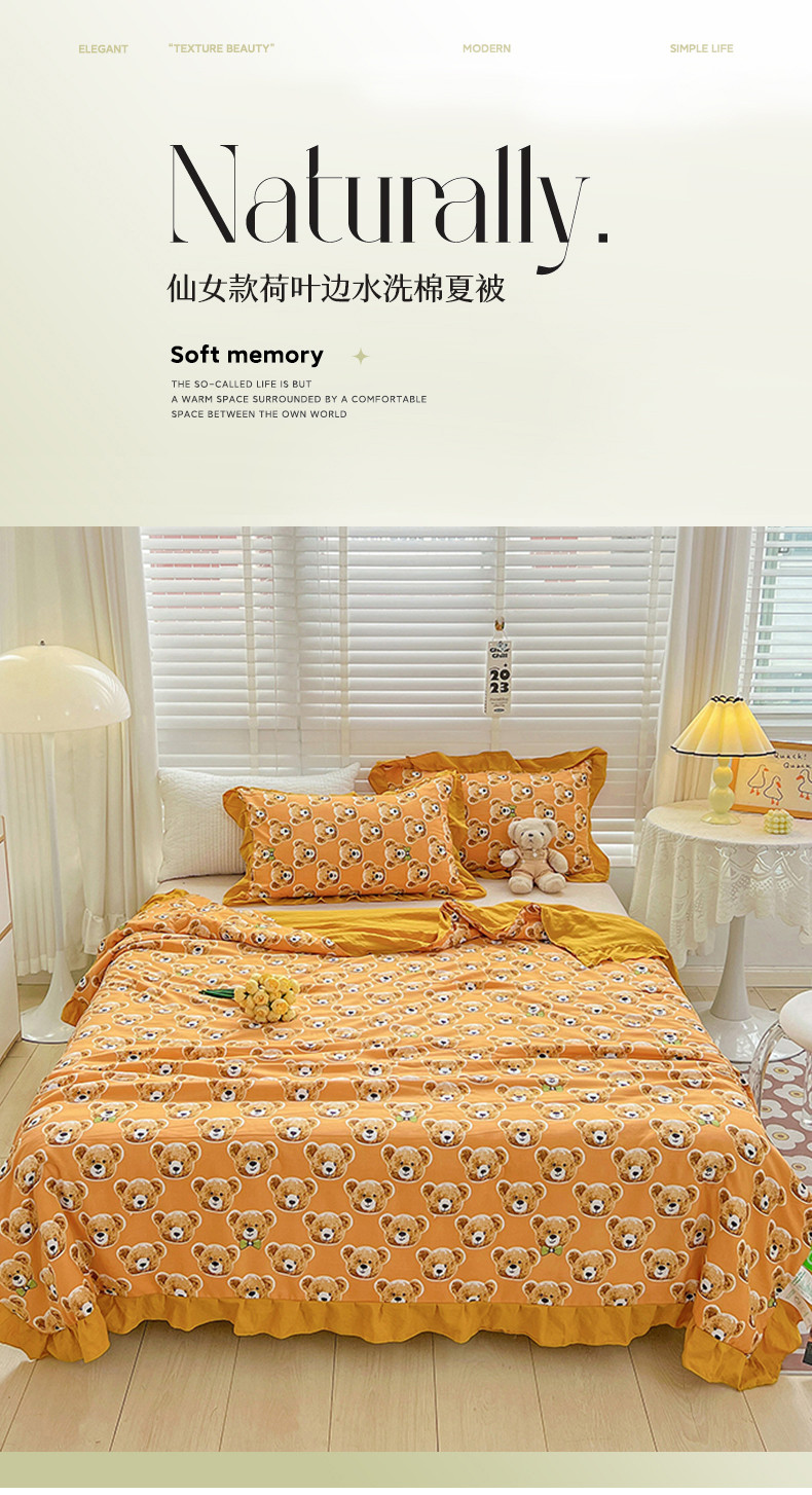 商品名称:星巴K 2023新款仙女款荷叶边水洗棉夏被韩版夏凉被空调被 熊宝
