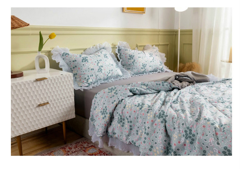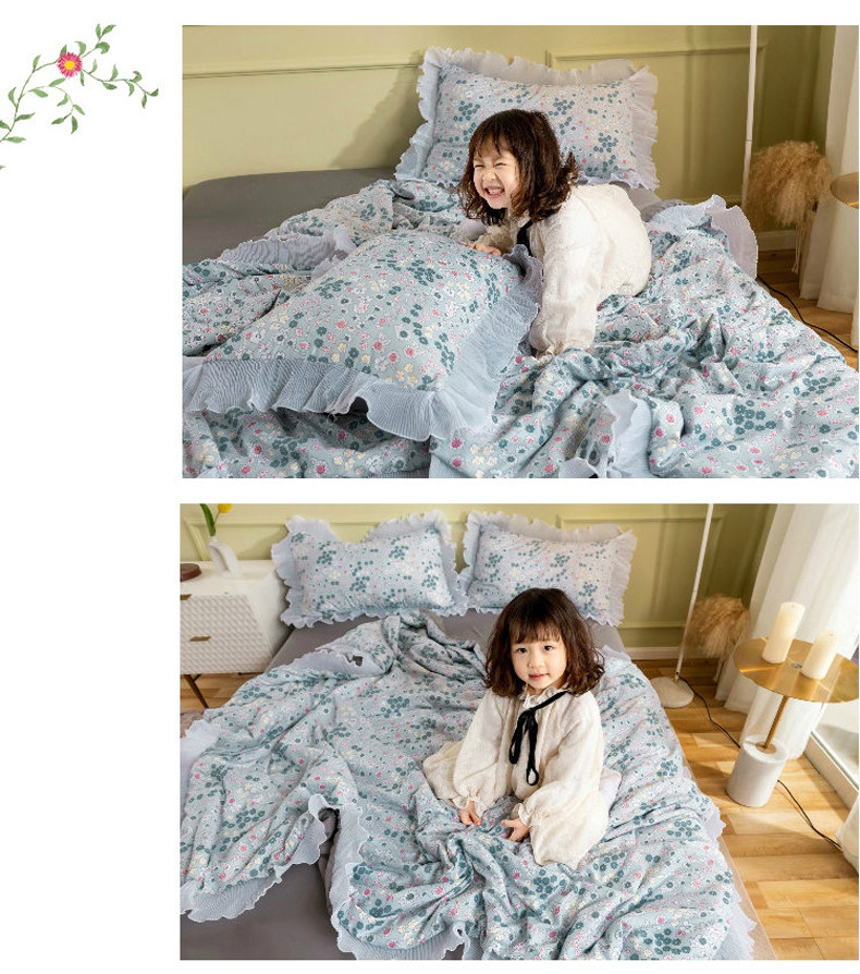 十九色 2024新款柔赛丝雪纺花边夏被 小花蓝灰