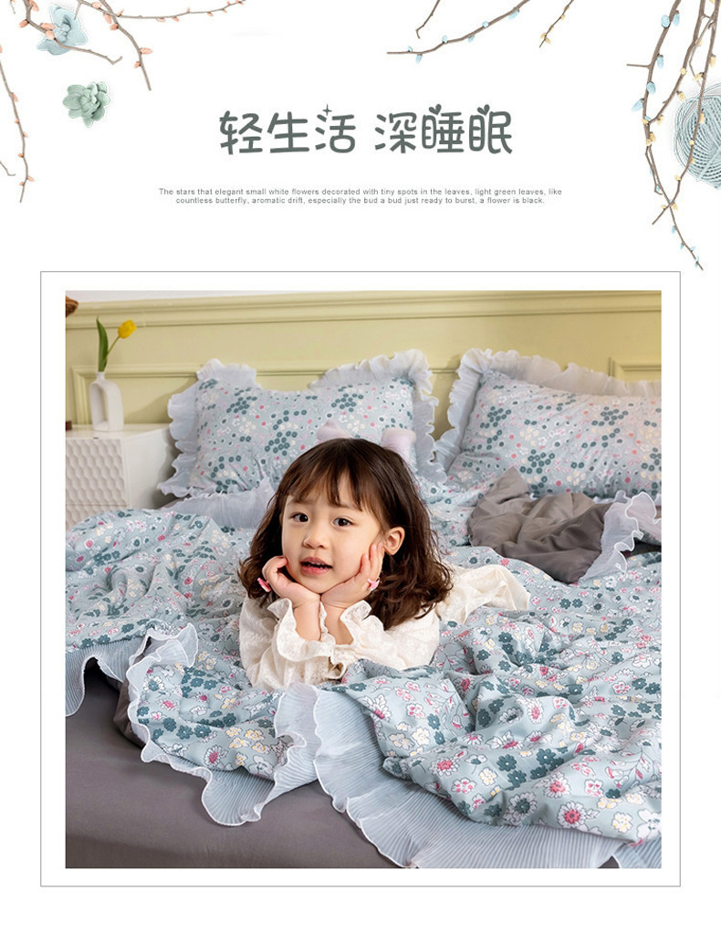 商品名称:十九色 2024新款柔赛丝雪纺花边夏被 小花蓝灰