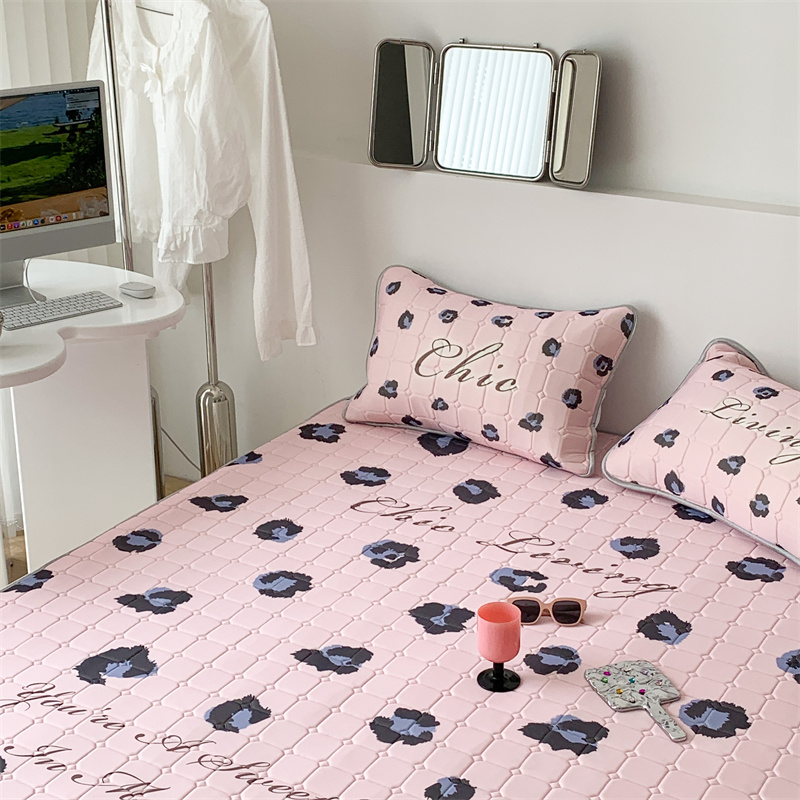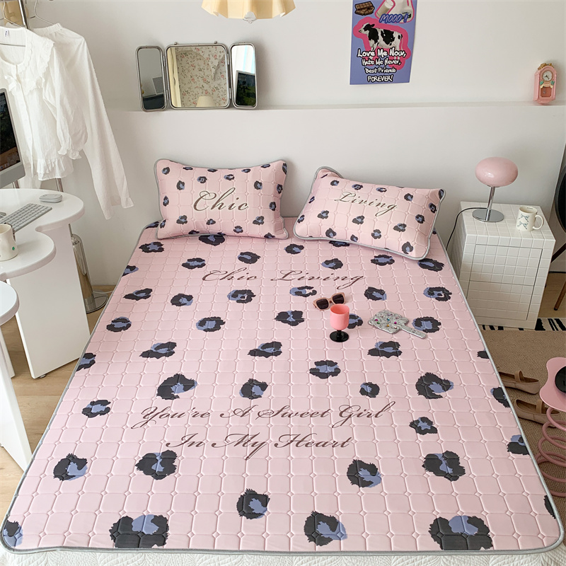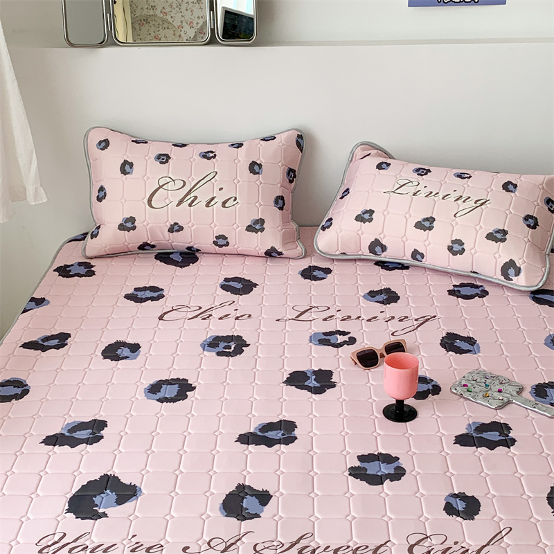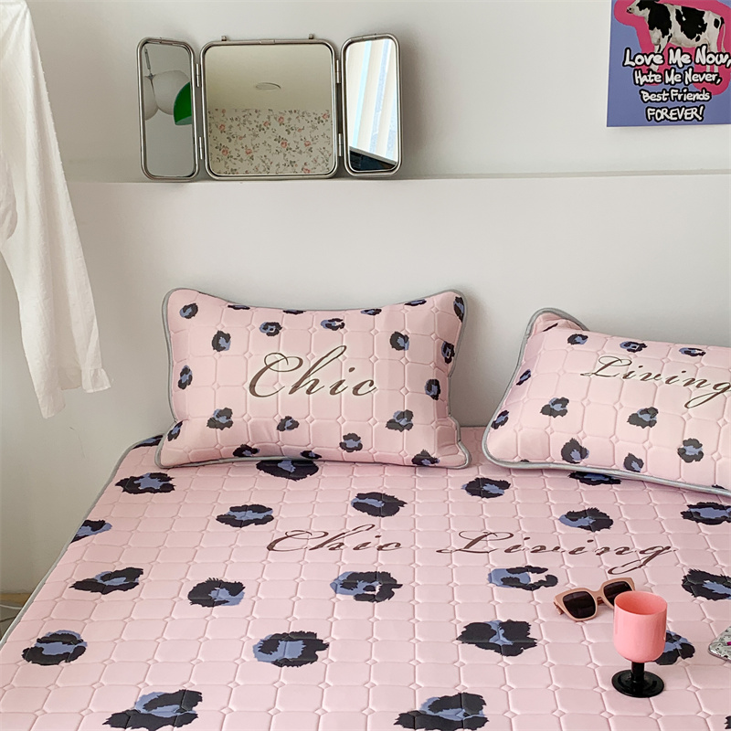 商品名称:昔可 2023新款方块绗缝乳胶凉席三件套Chic风 粉紫豹纹