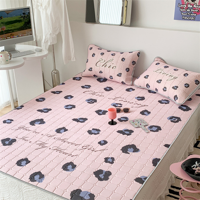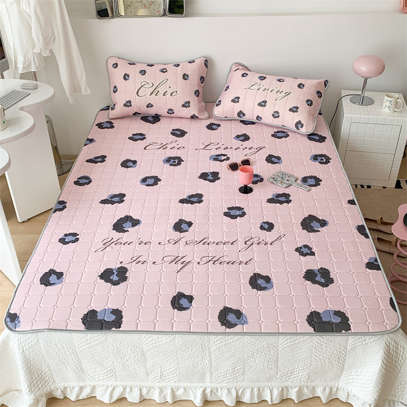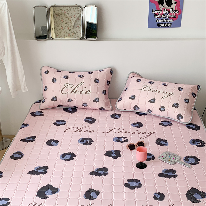 昔可 2023新款方块绗缝乳胶凉席三件套Chic风 粉紫豹纹