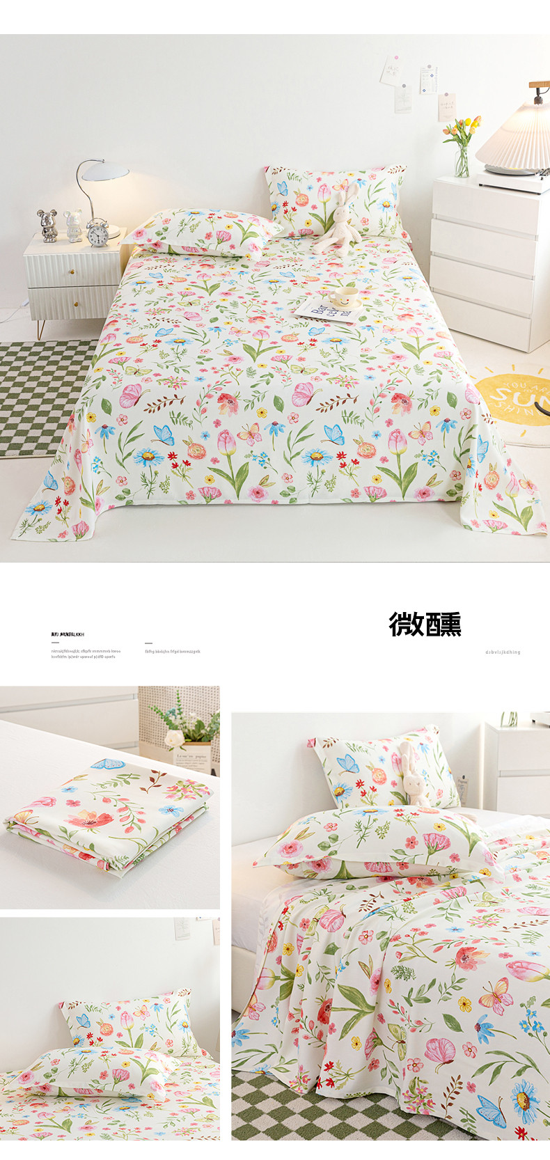(总)首爱家纺 2025新款小清新全棉纯棉人字纹工艺款四件套,初晴花语,组合图仅供展示,春日碎花,法式浪漫,繁花似锦,腊肠小狗,罗兰之恋,梦幻紫兰,奶油小花,清新薄荷,秋日落叶,甜心派,万朵花,樱花粉,郁金香,紫风铃