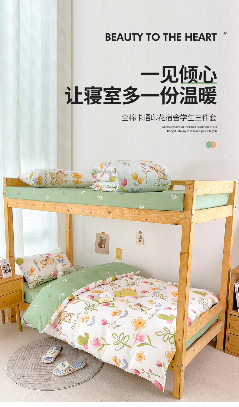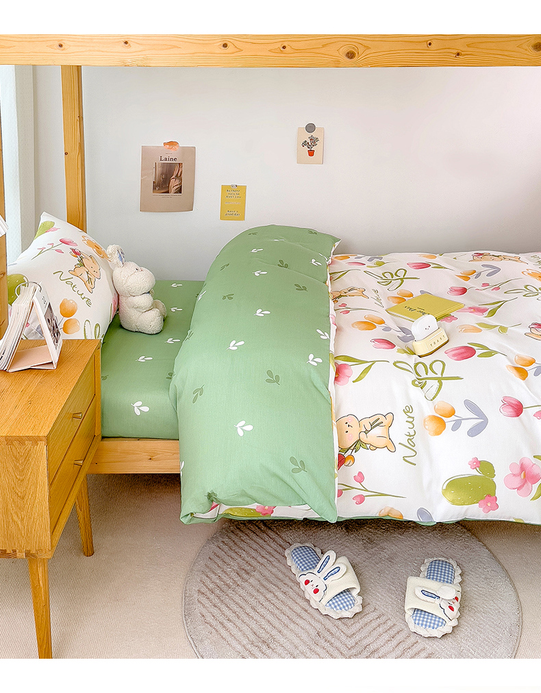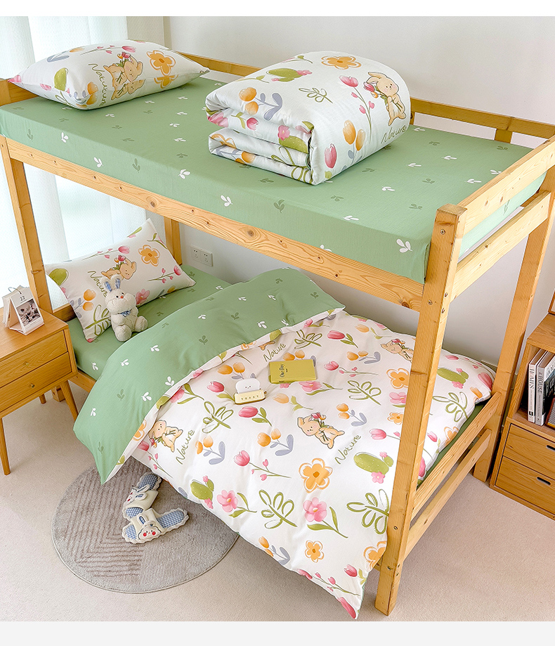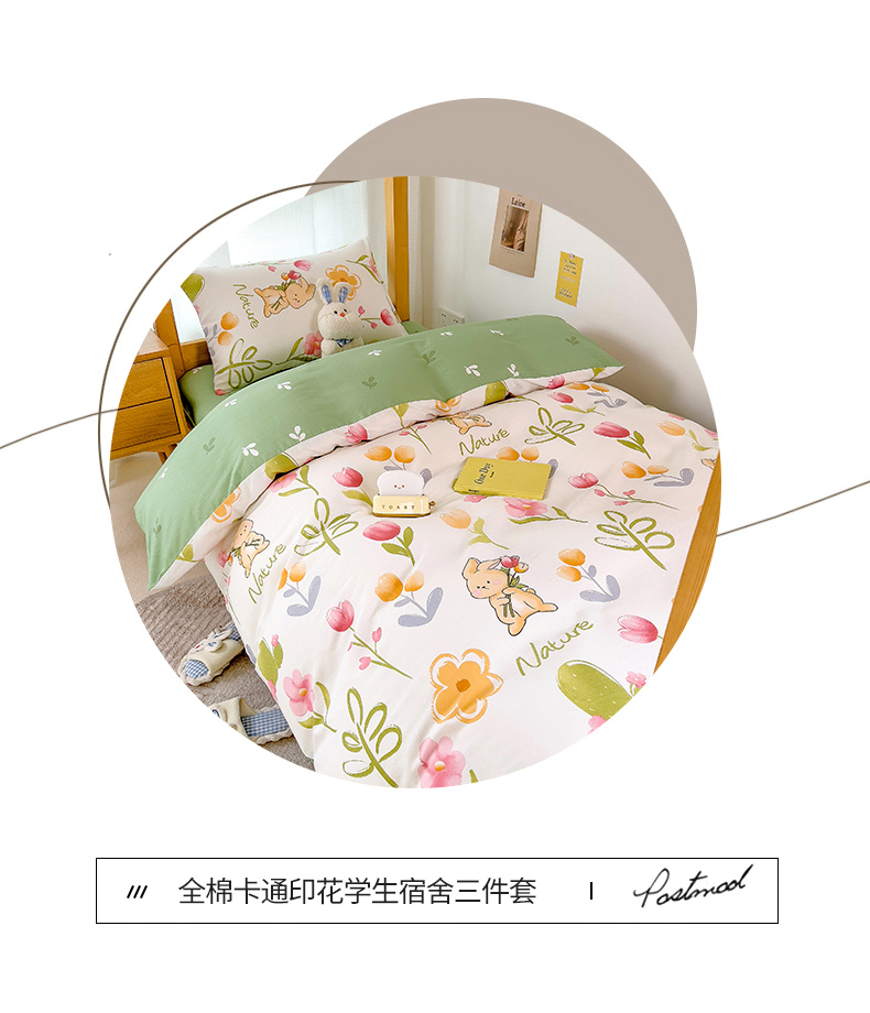 商品名称:芃成家纺 2023新款全棉13070卡通印花学生三件套 小园丁