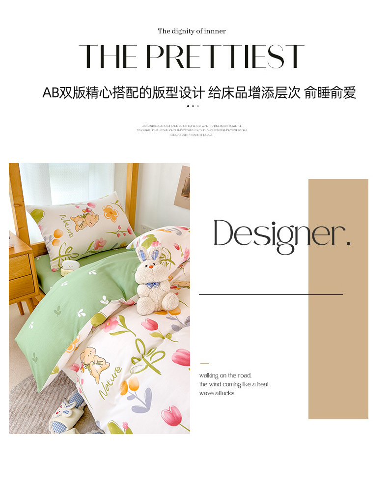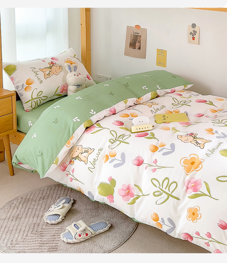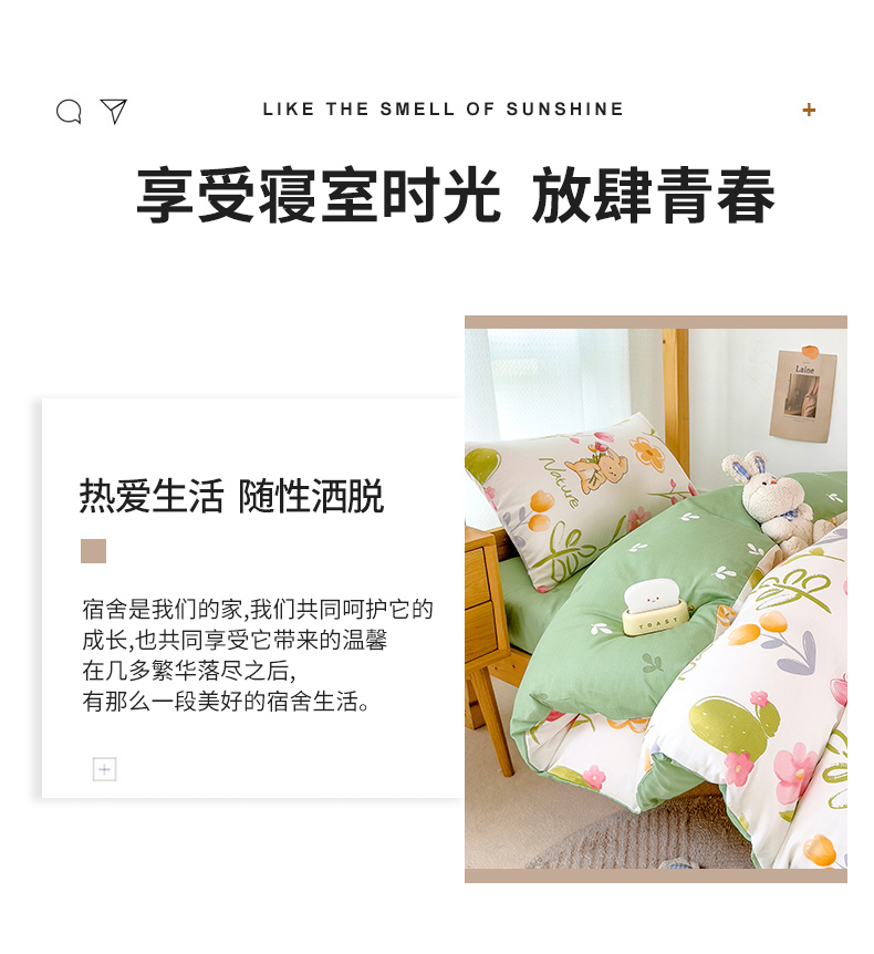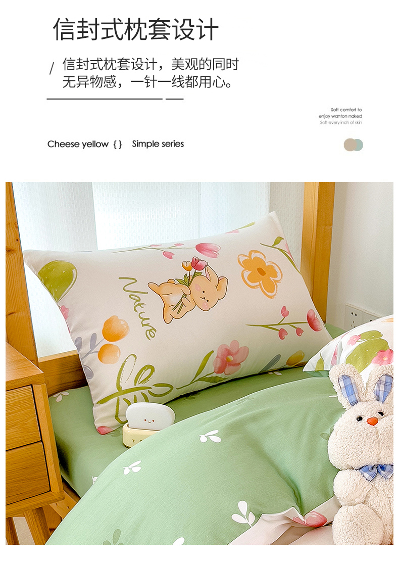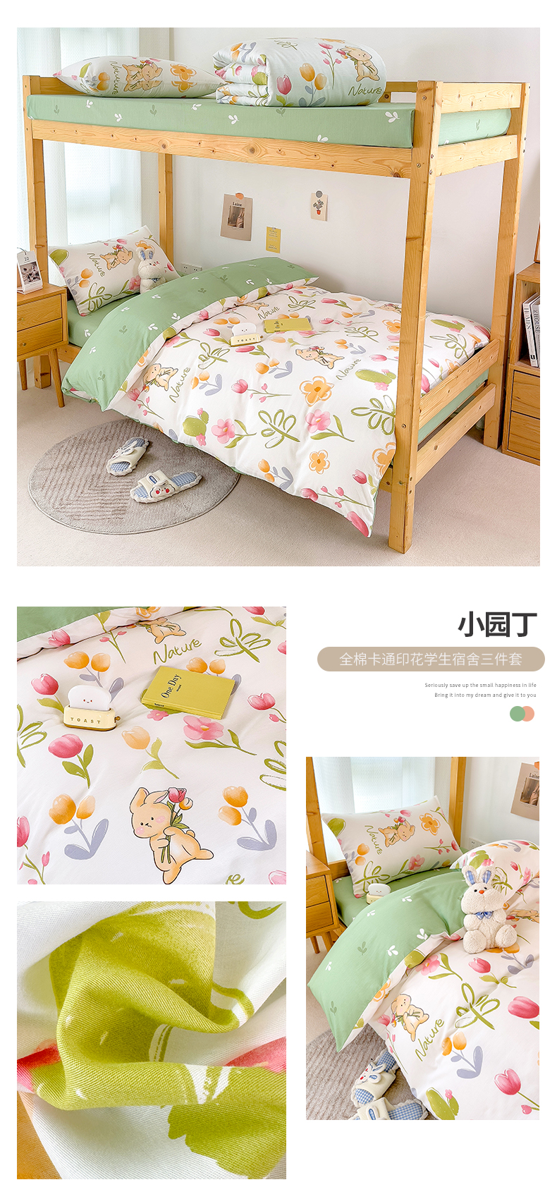 商品名称:芃成家纺 2023新款全棉13070卡通印花学生三件套 小园丁