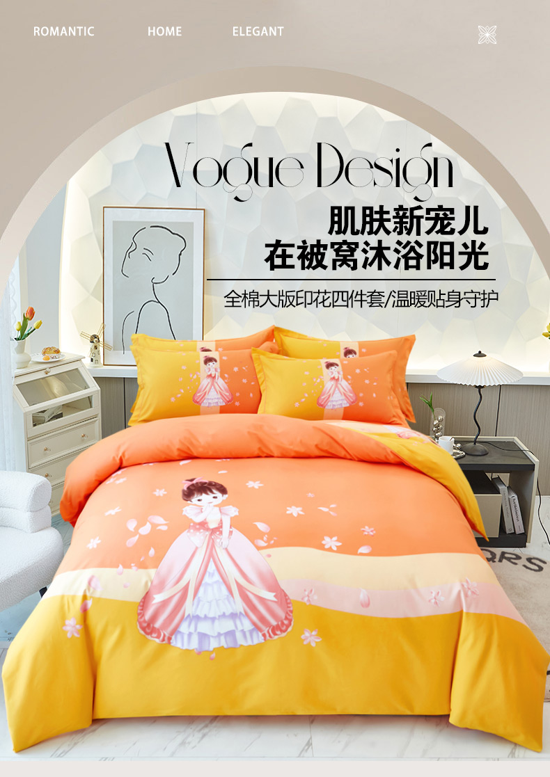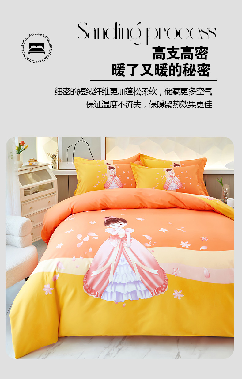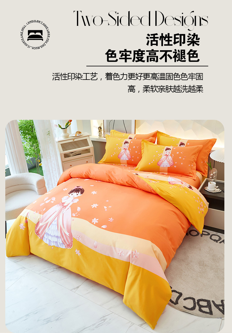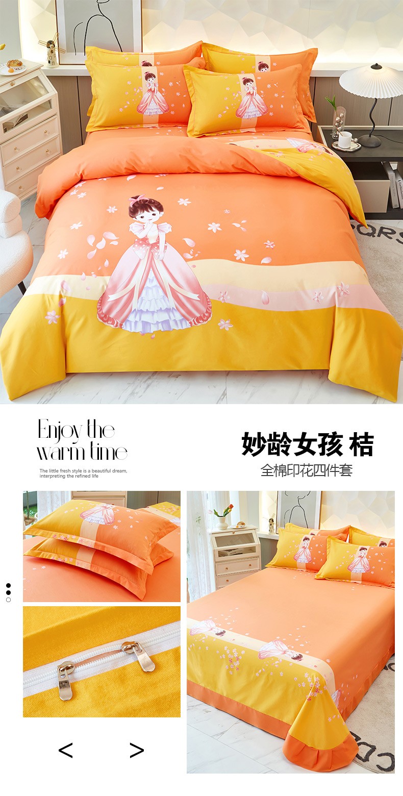 商品名称:雲归梦 2023年新款加厚全棉生态磨毛大版四件套 妙龄女孩-桔