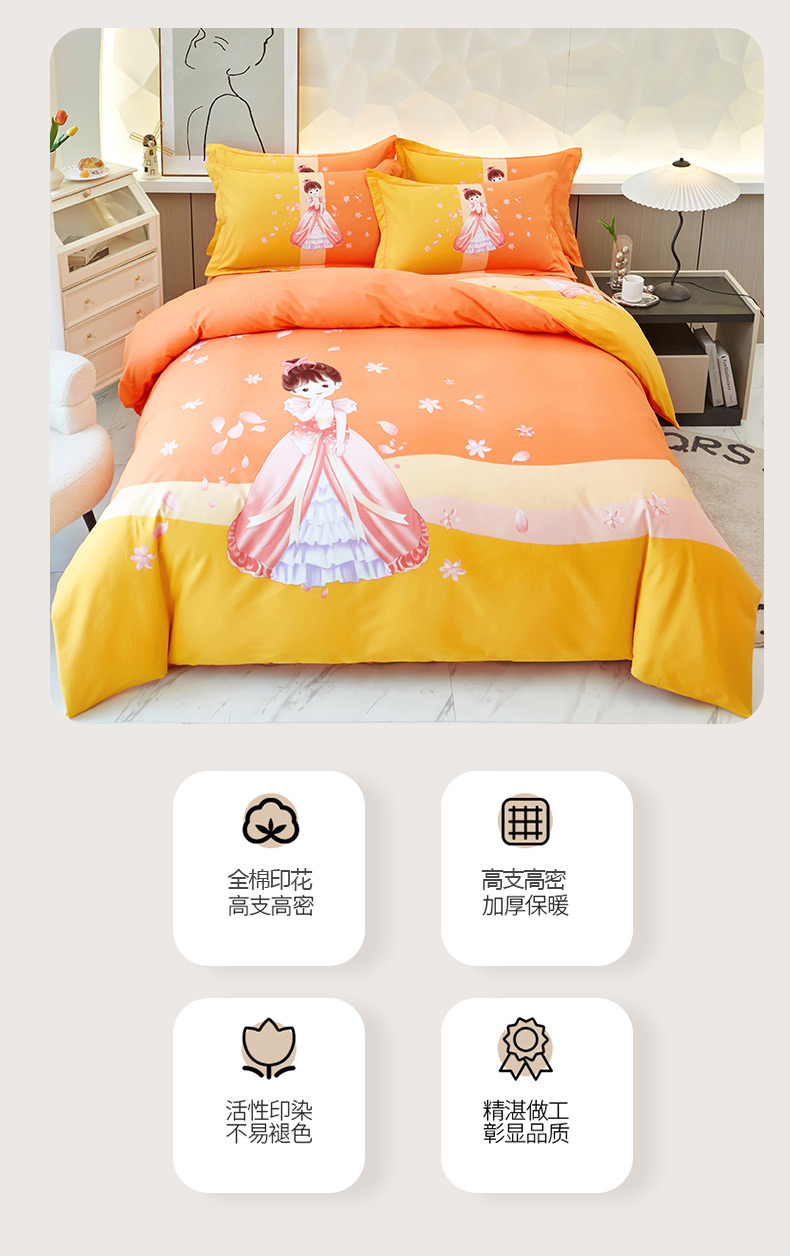 雲归梦 2023年新款加厚全棉生态磨毛大版四件套 妙龄女孩-桔