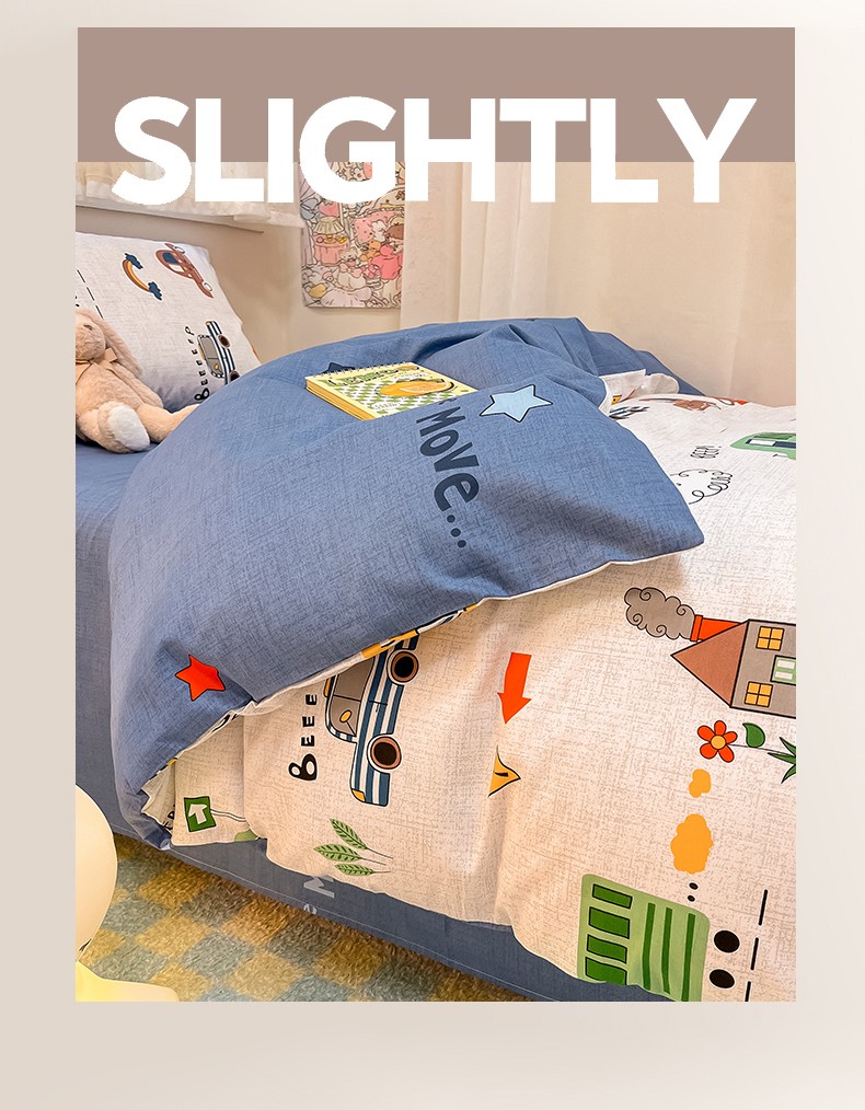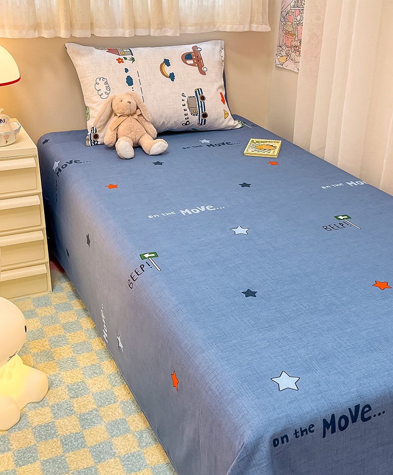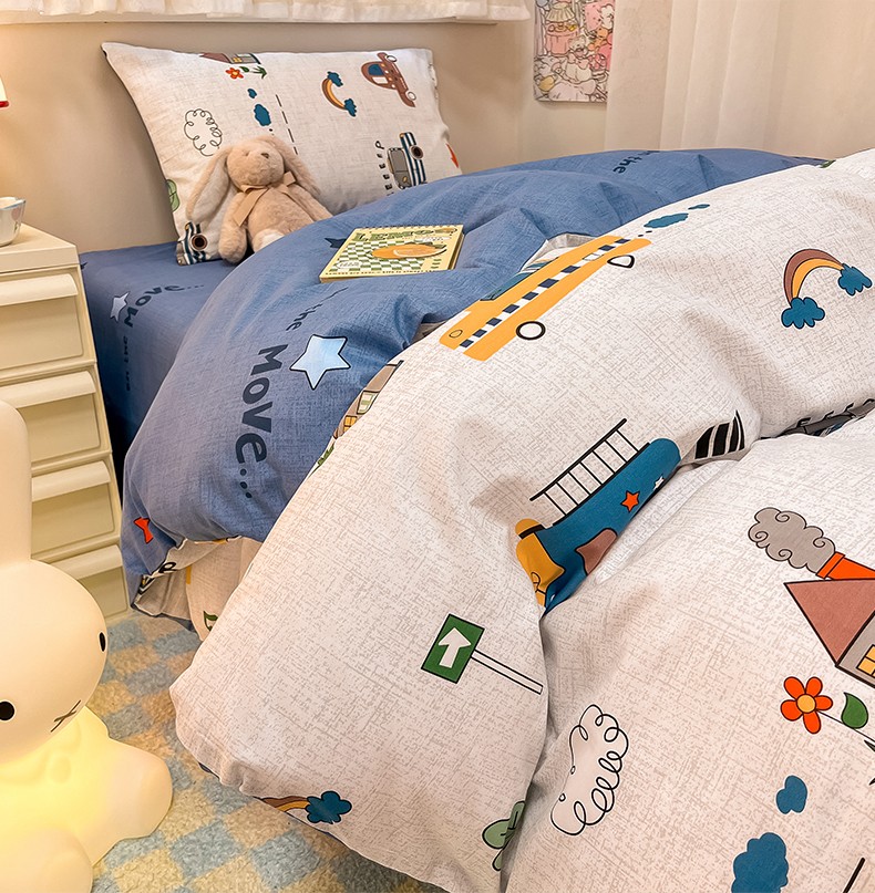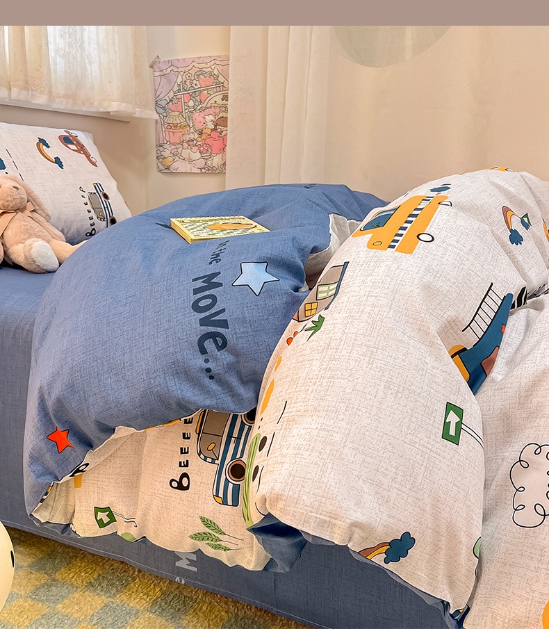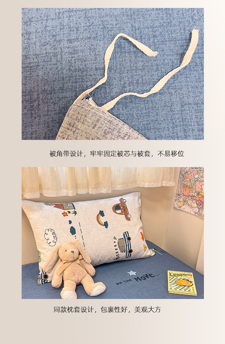 商品名称:简宜13070纯棉全棉40支斜纹卡通小清新学生床三件套四件套 嘟嘟小车