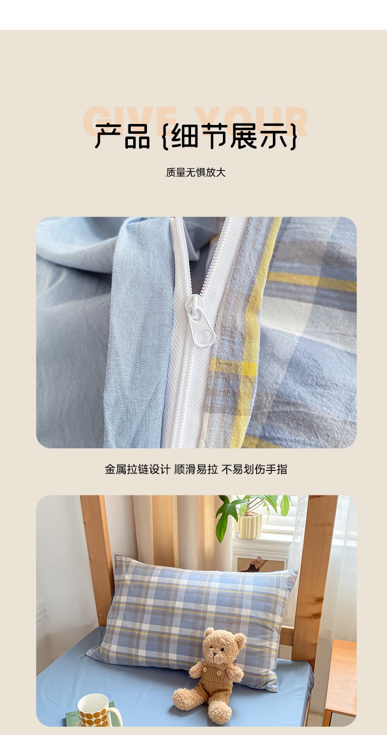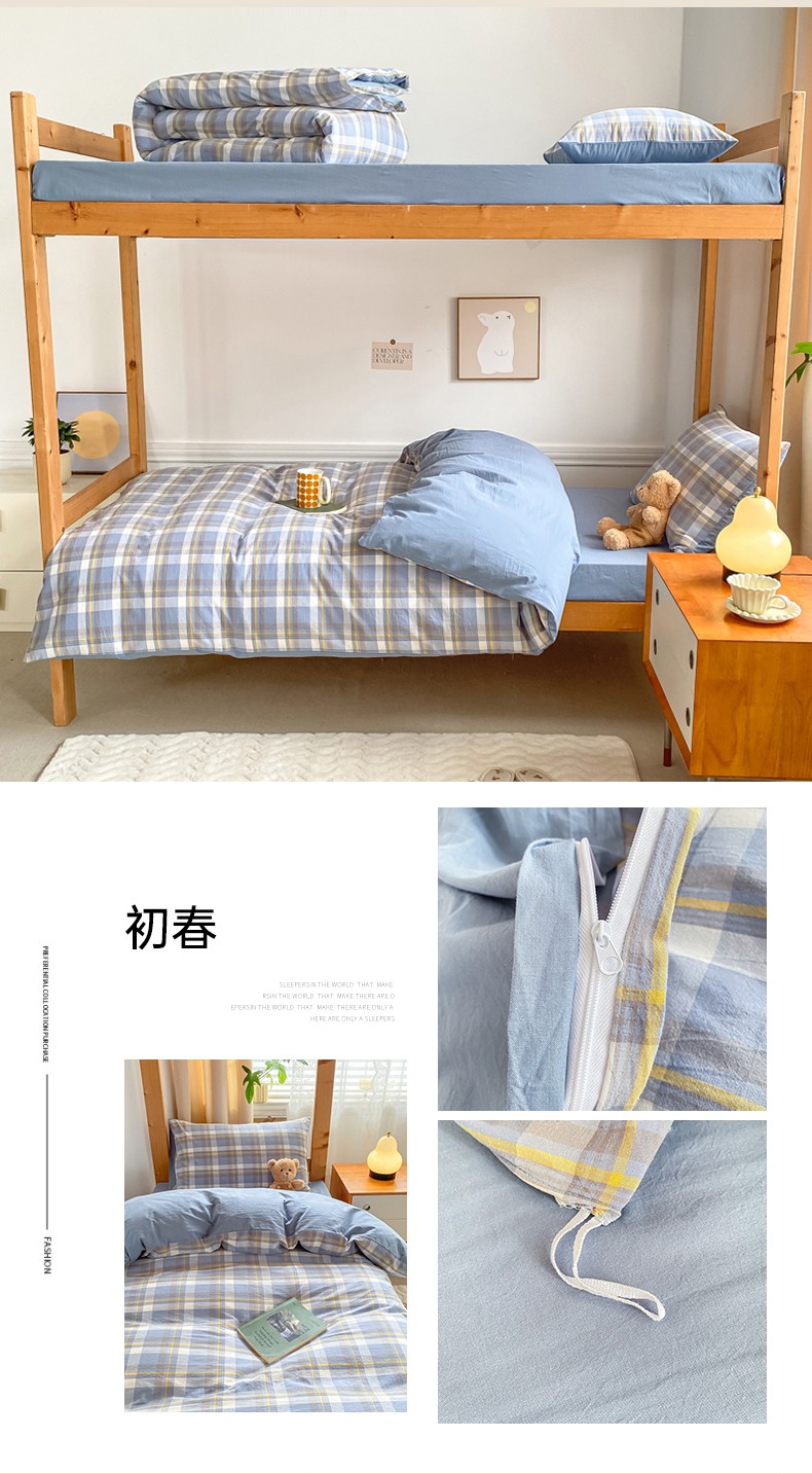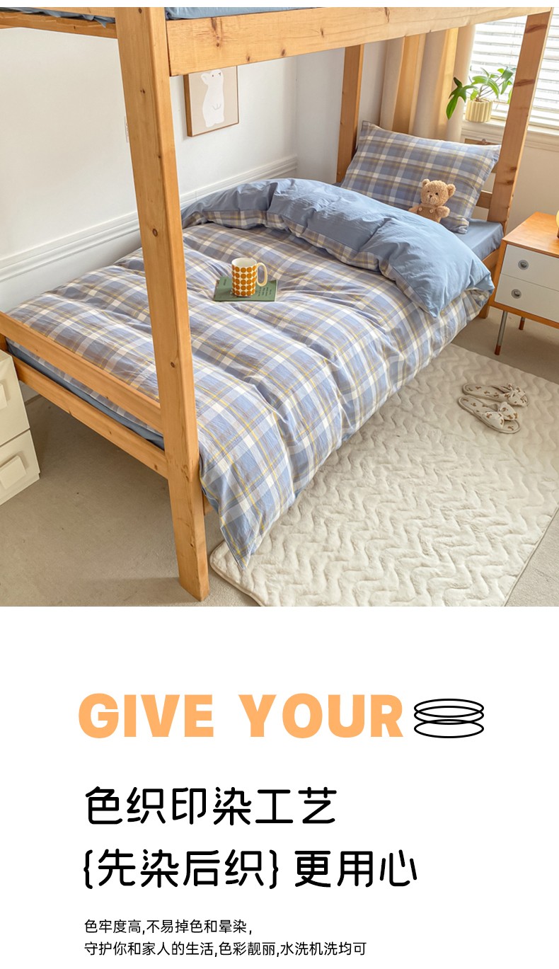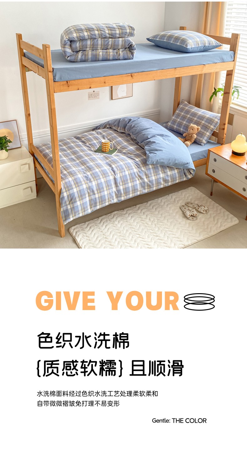 商品名称:吉象 2025新款色织学生水洗棉上下铺三件套 初春