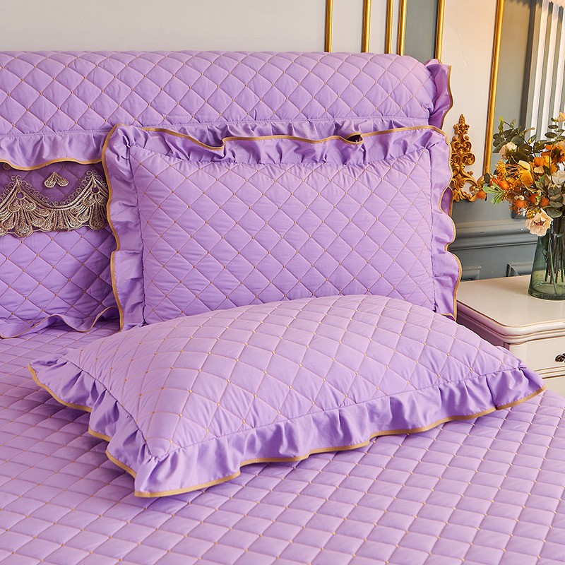 屹成 2024新款水洗棉蕾丝四季款床笠床裙单品套件-枕套 浅紫