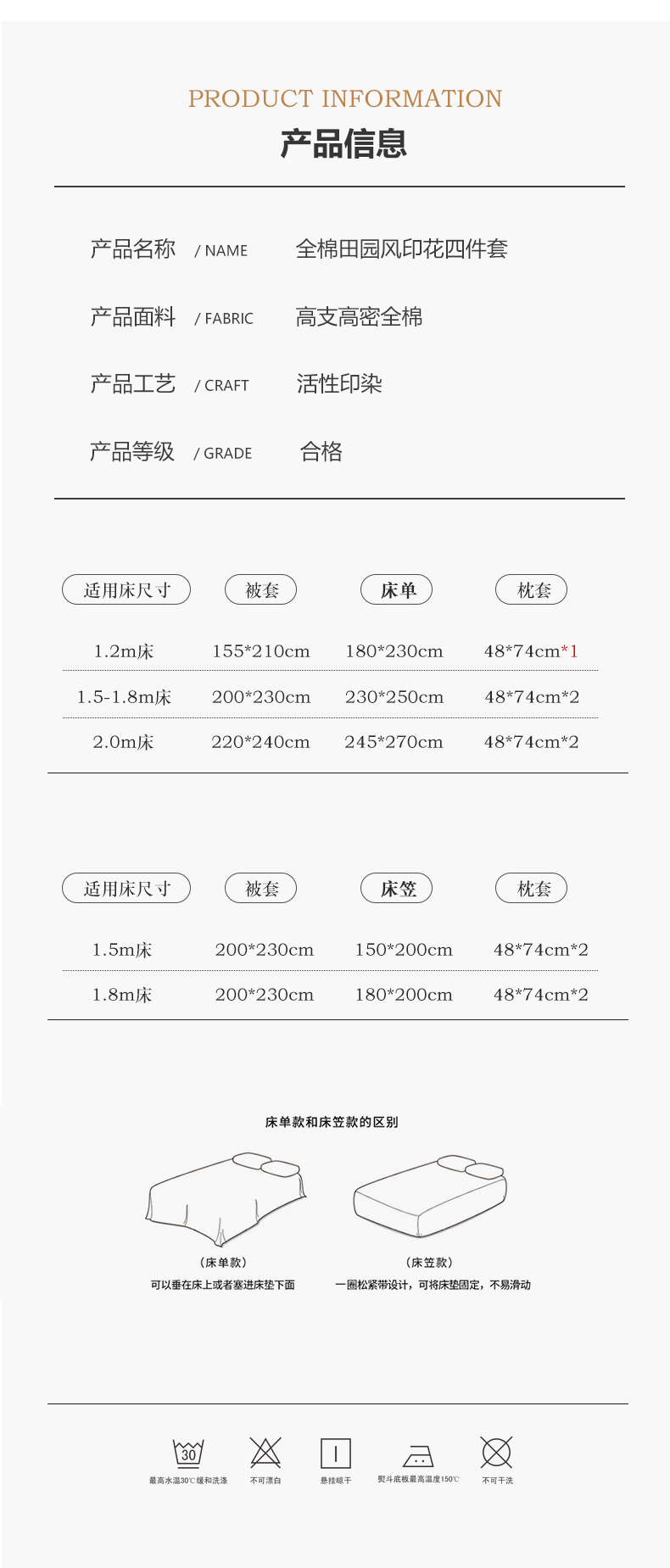 商品名称:捌月新款13372全棉田园风印花四件套小红书同款四件套直播新品 夕颜