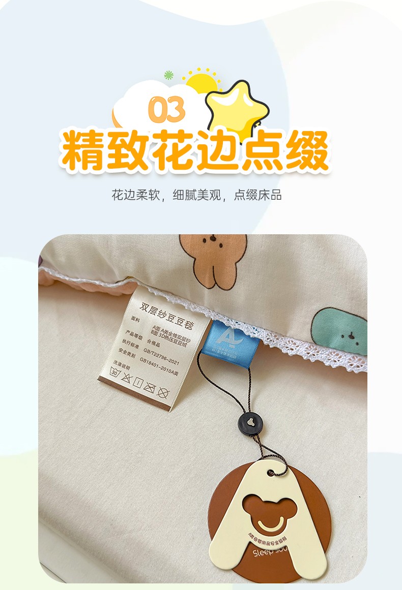商品名称:希诺 2023新款全棉A类婴幼儿双层纱儿童多功能盖毯豆豆毯可拆洗豆豆被 五彩兔兔