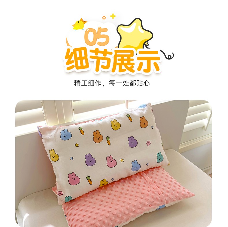 希诺 2023新款全棉A类婴幼儿双层纱儿童多功能盖毯豆豆毯可拆洗豆豆被 五彩兔兔