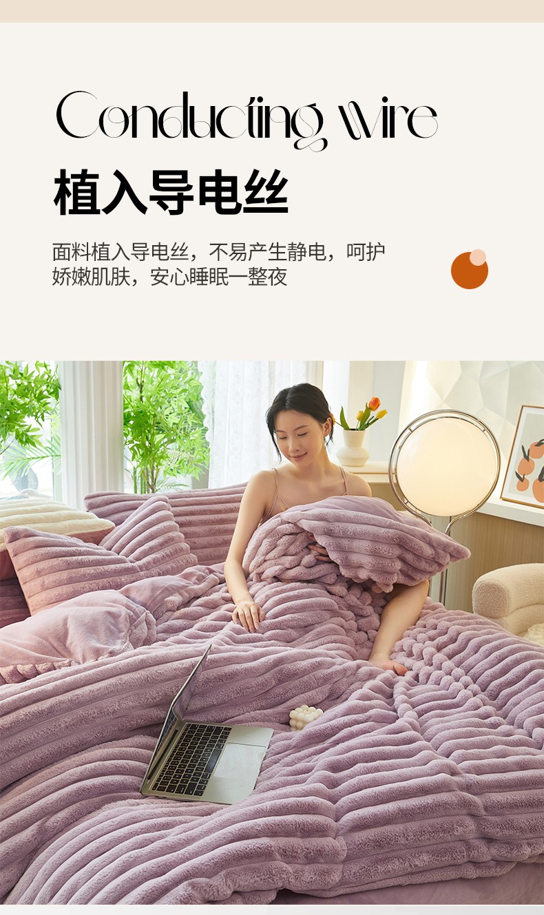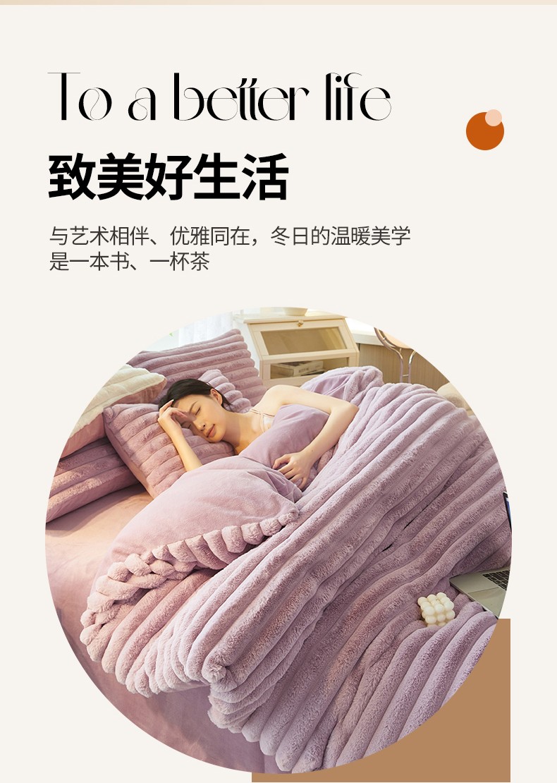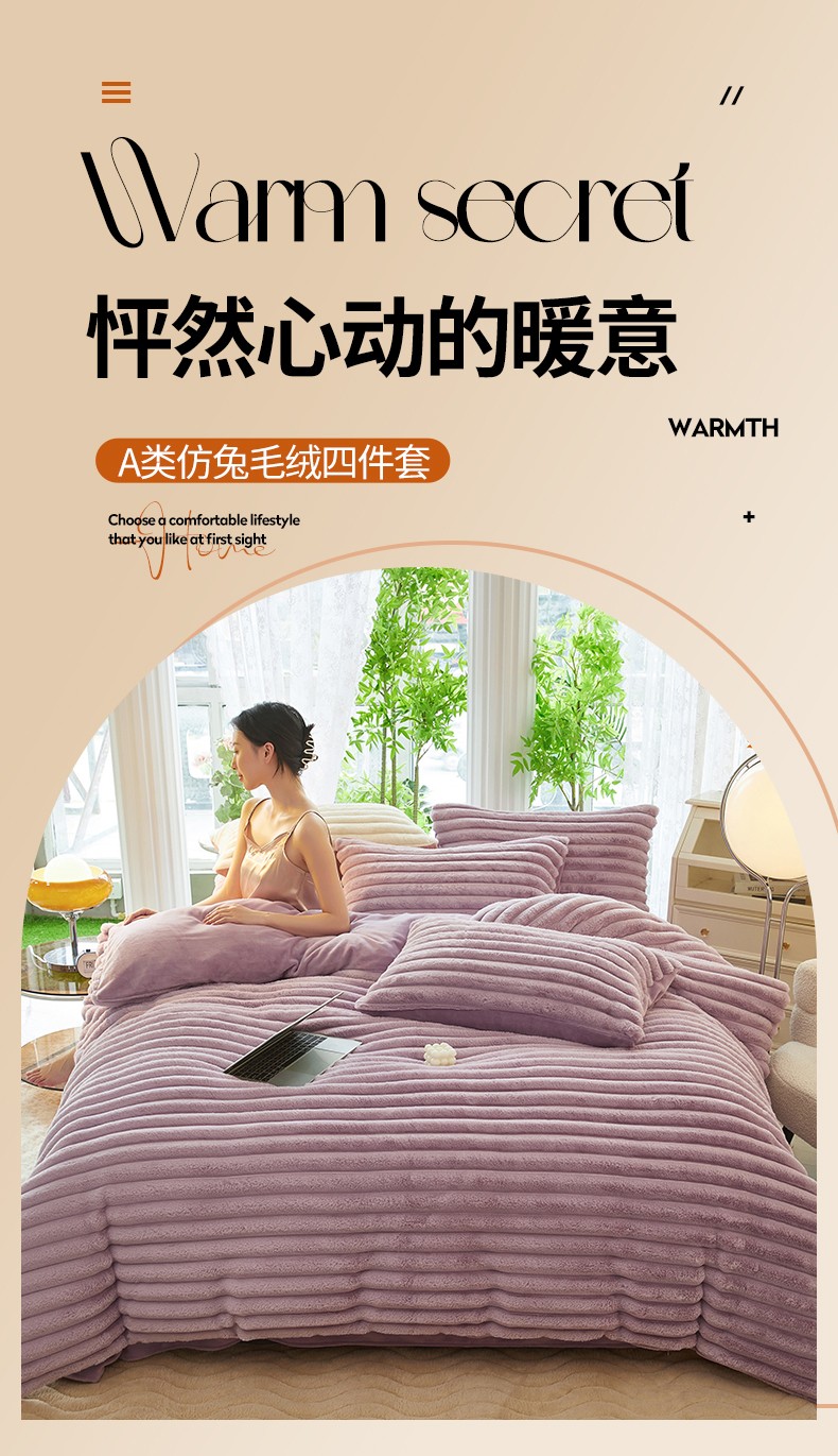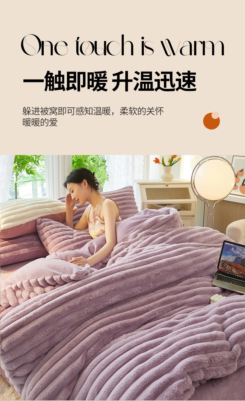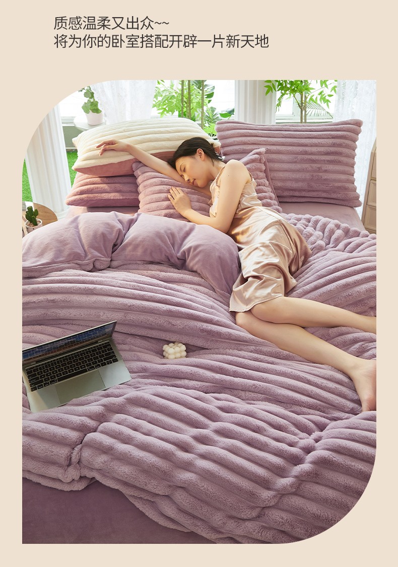 澳洲羽 2024新款高克重牛奶绒兔兔绒四件套 香芋紫