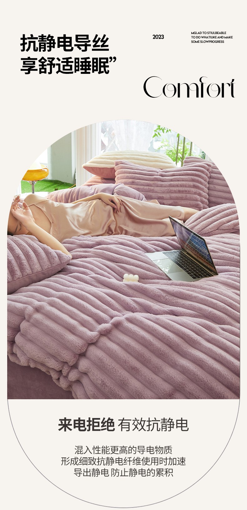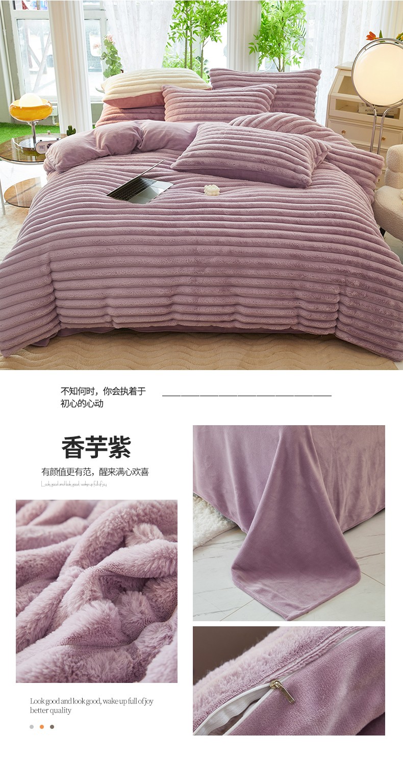 商品名称:澳洲羽 2024新款高克重牛奶绒兔兔绒四件套 香芋紫