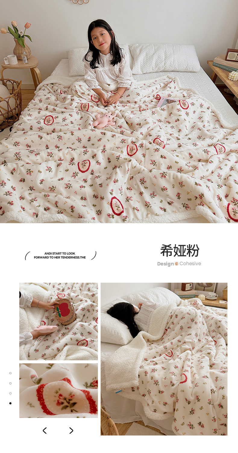 萝莉家纺 2023新款ins加厚牛奶绒羊羔绒毯午睡毯沙发盖毯 希娅粉