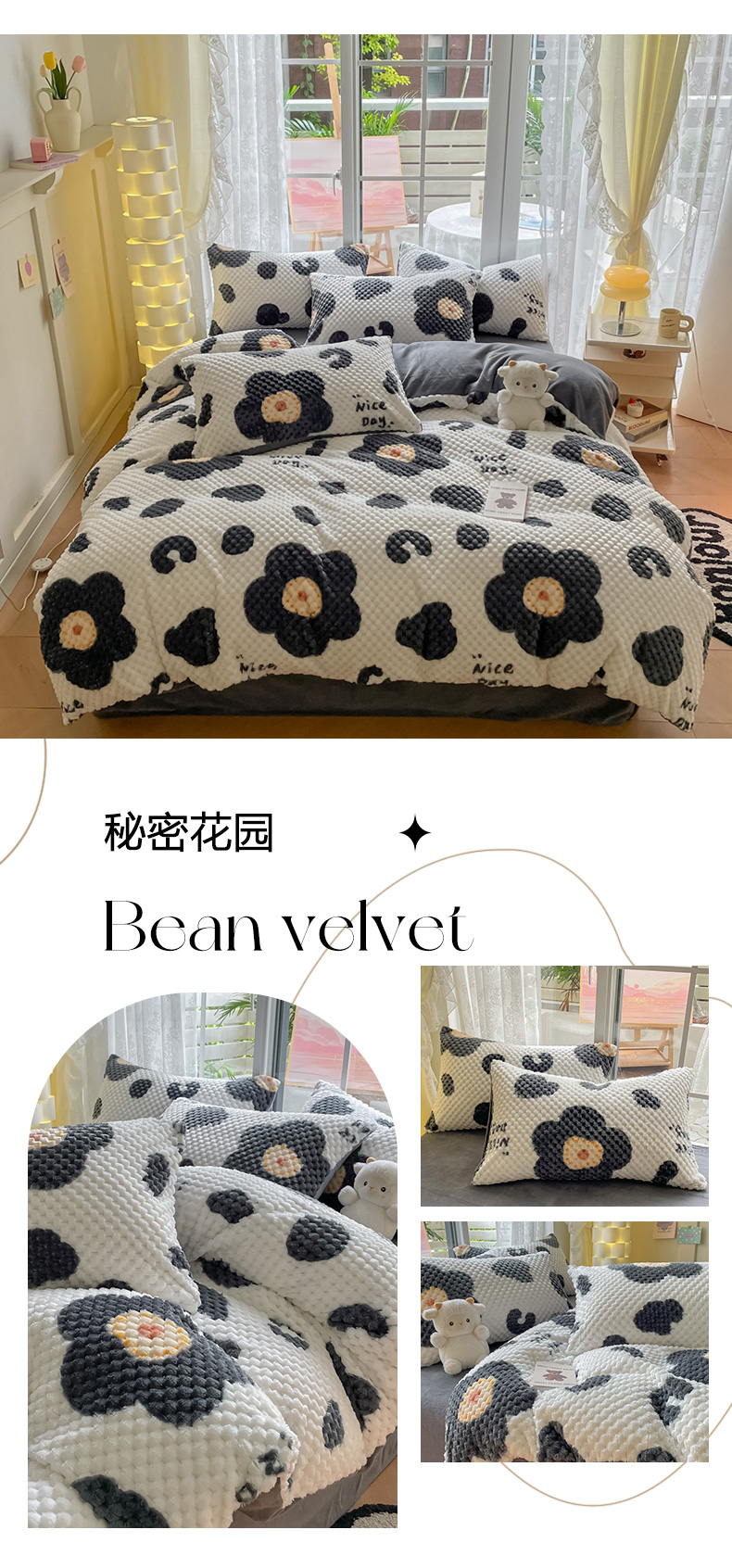 商品名称:莱米 2023新款高克重豆豆绒四件套 秘密花园