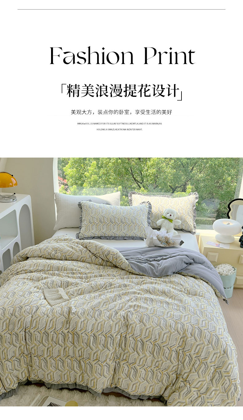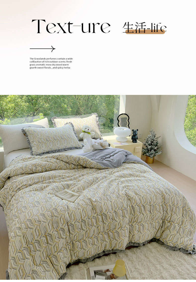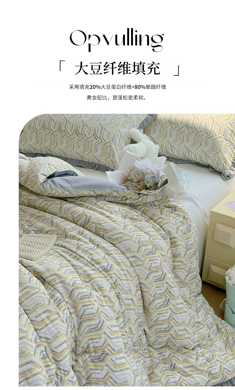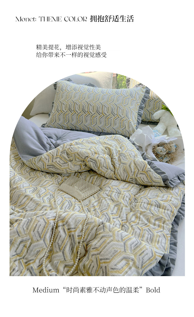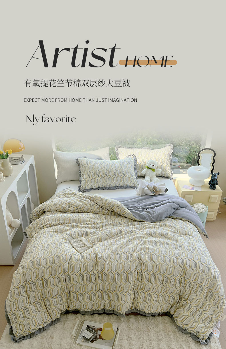 商品名称:典冠 2024新款有氧提花竺节棉双层纱大豆被春秋被冬被 流金岁月