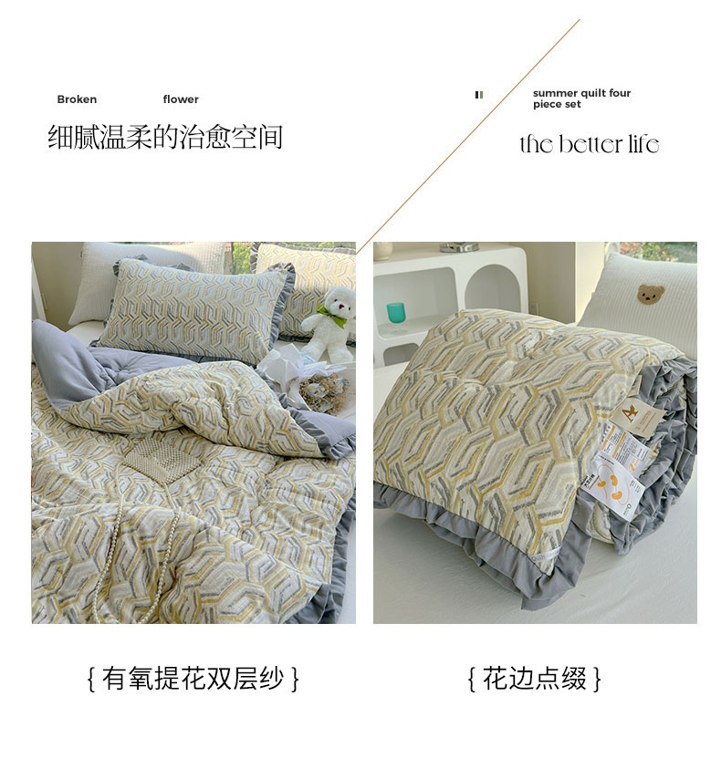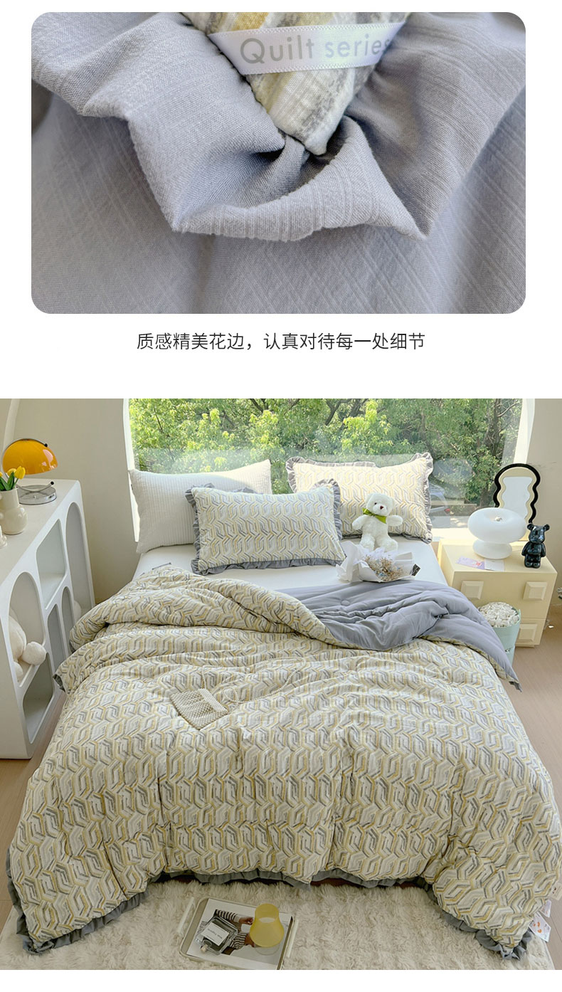 (总)典冠(有质检)2024爆款7D云柔皱皱纱A类棉小泡良品大豆夏被,奶昔白,樱花粉,绅士蓝,薄荷绿,高级灰