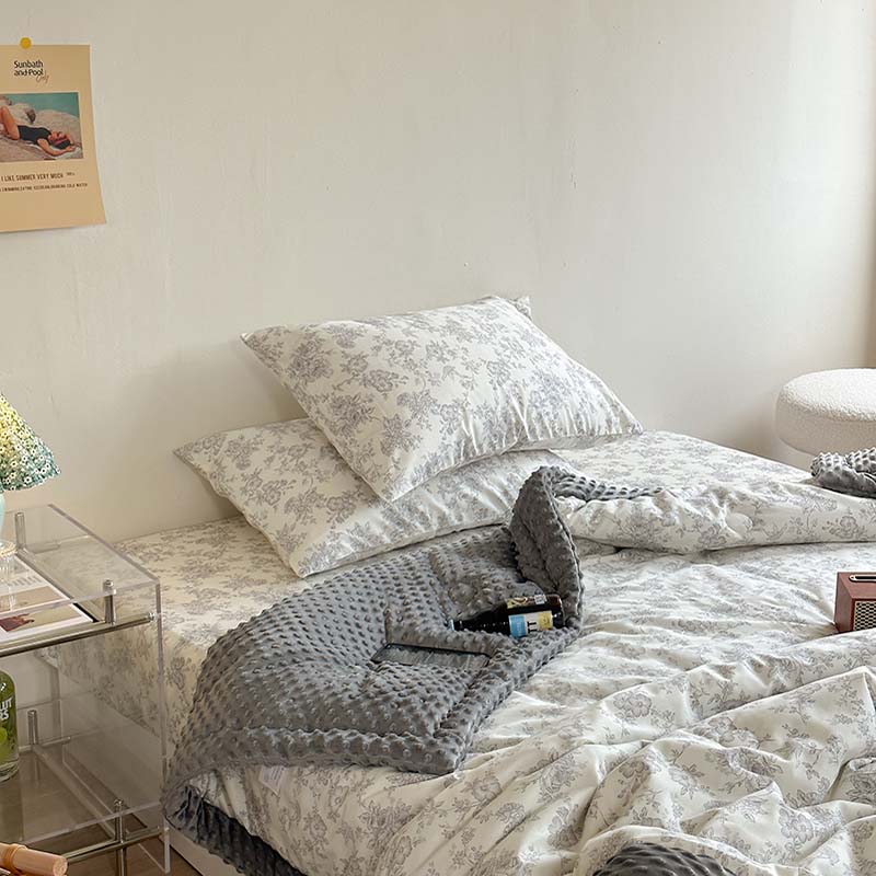 星期八 2023新款复古碎花全棉豆豆春秋被四件套 白山茶