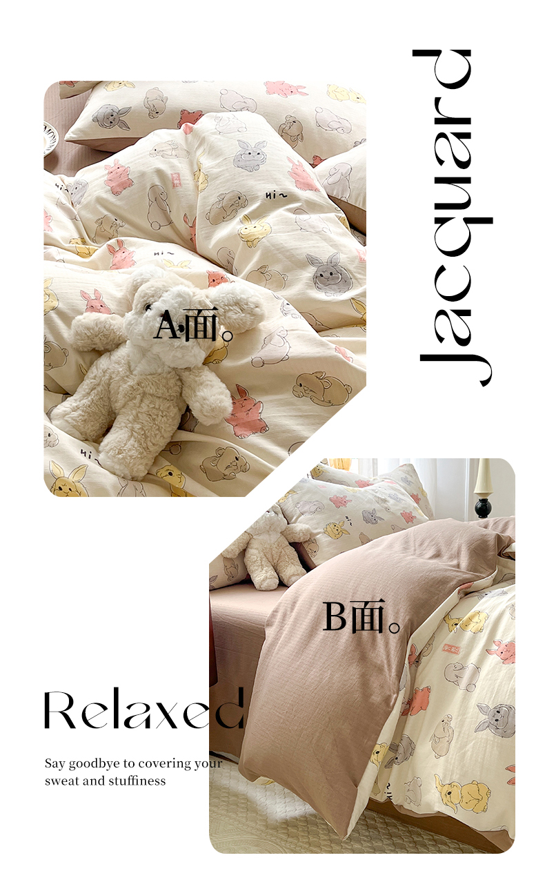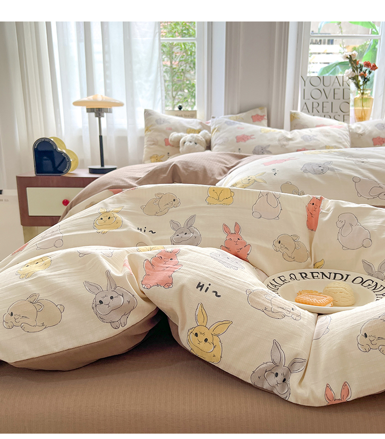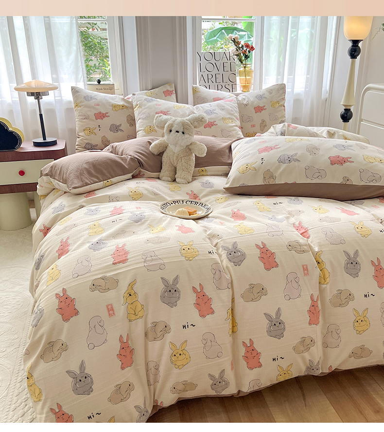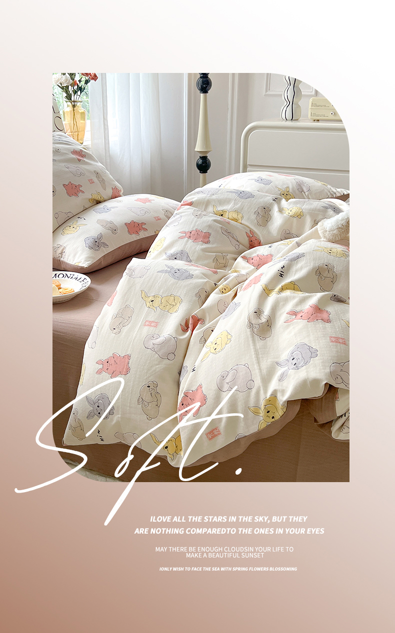 当前位置: 91家纺网 > 商品网购 > 床品套件 > 四件套 > 提花四件套 > 妖妖家纺 2023新款有氧提花小竺棉印花四件套 多彩兔