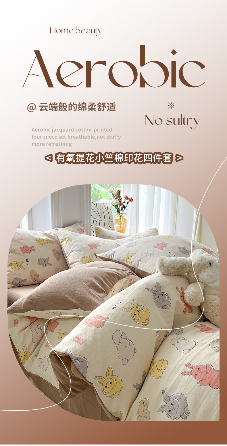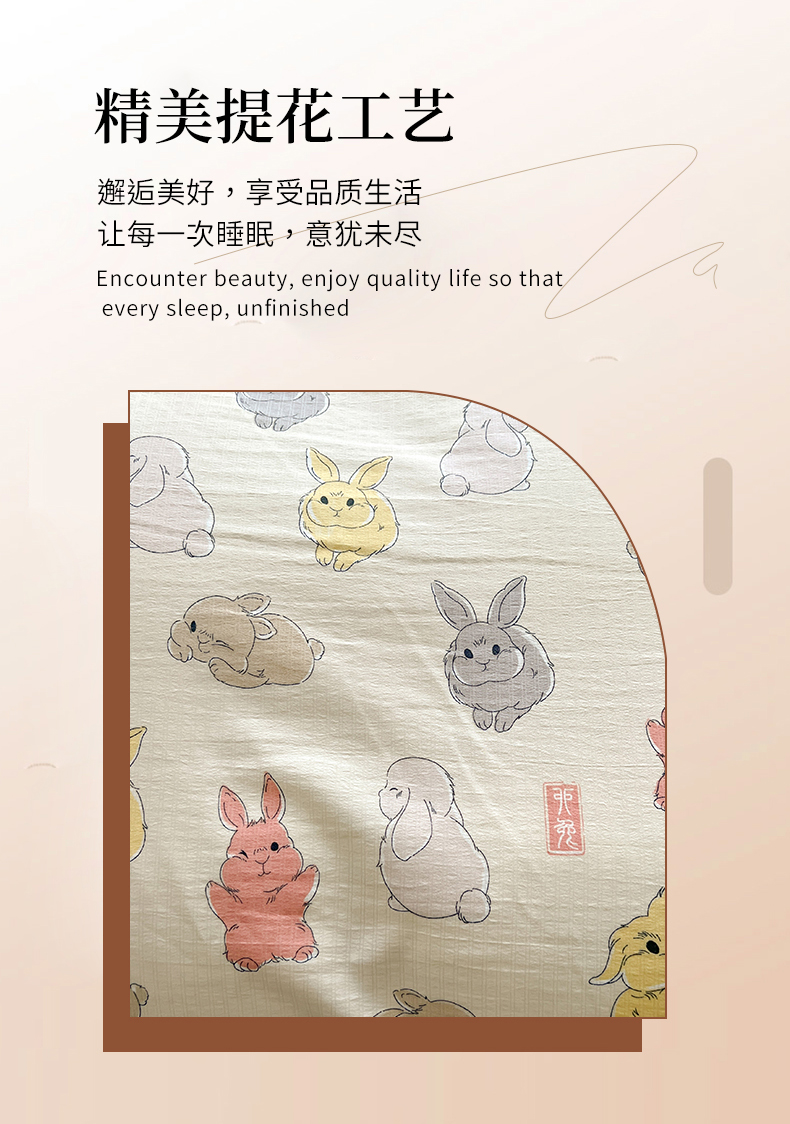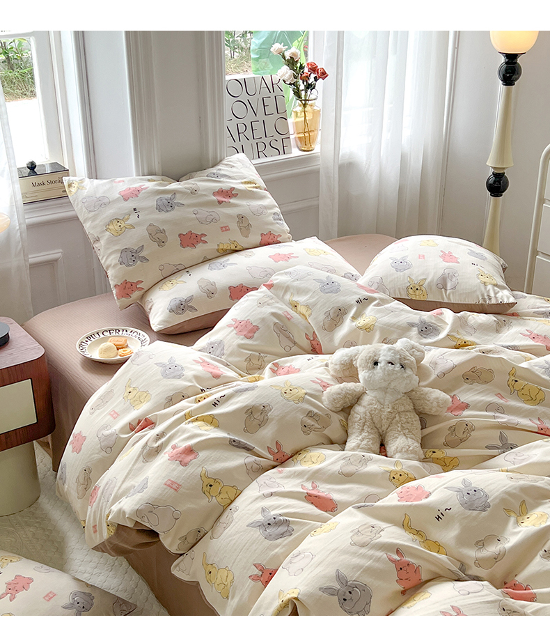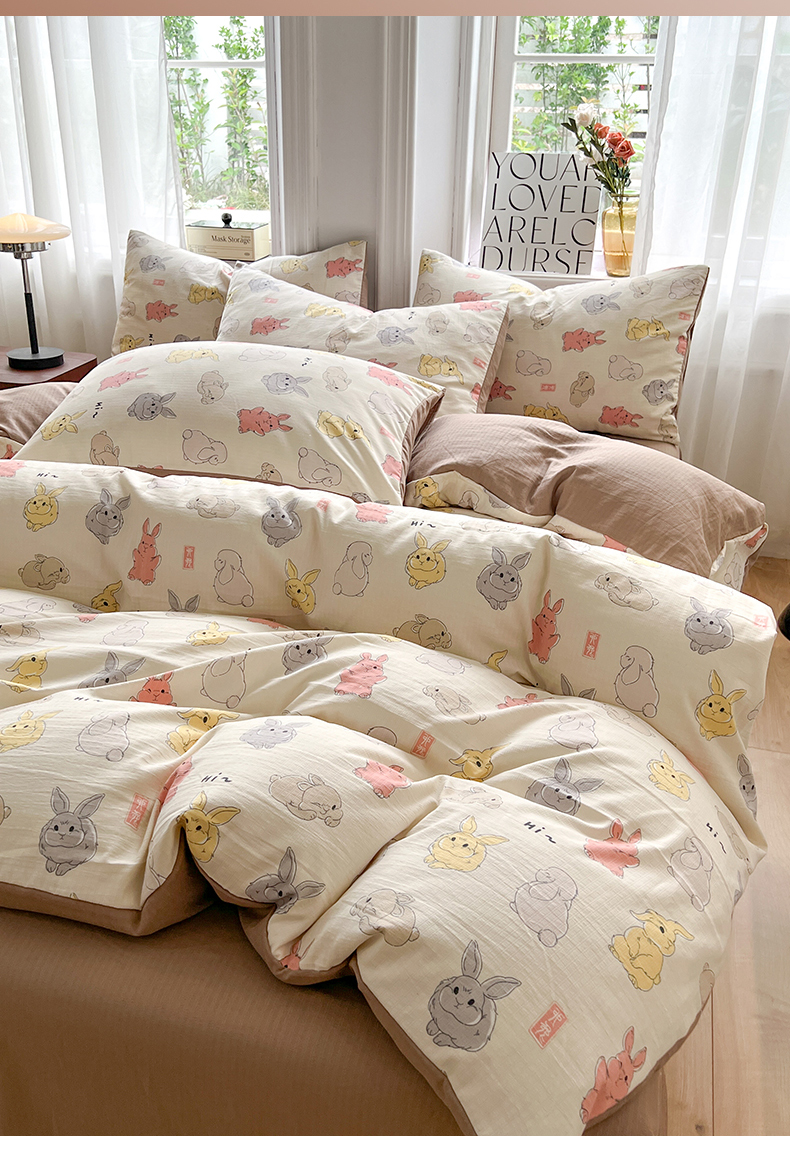 当前位置: 91家纺网 > 商品网购 > 床品套件 > 四件套 > 提花四件套 > 妖妖家纺 2023新款有氧提花小竺棉印花四件套 多彩兔