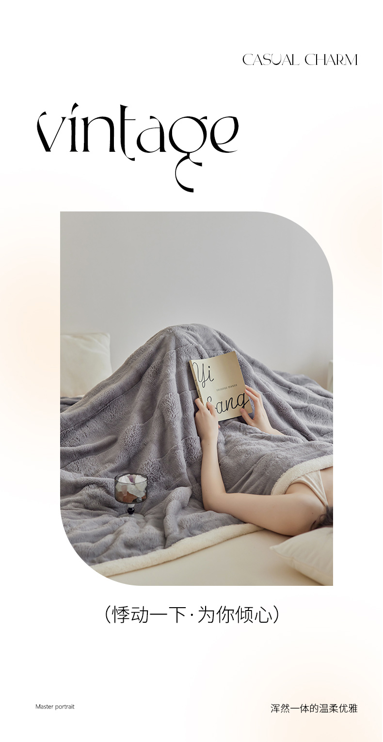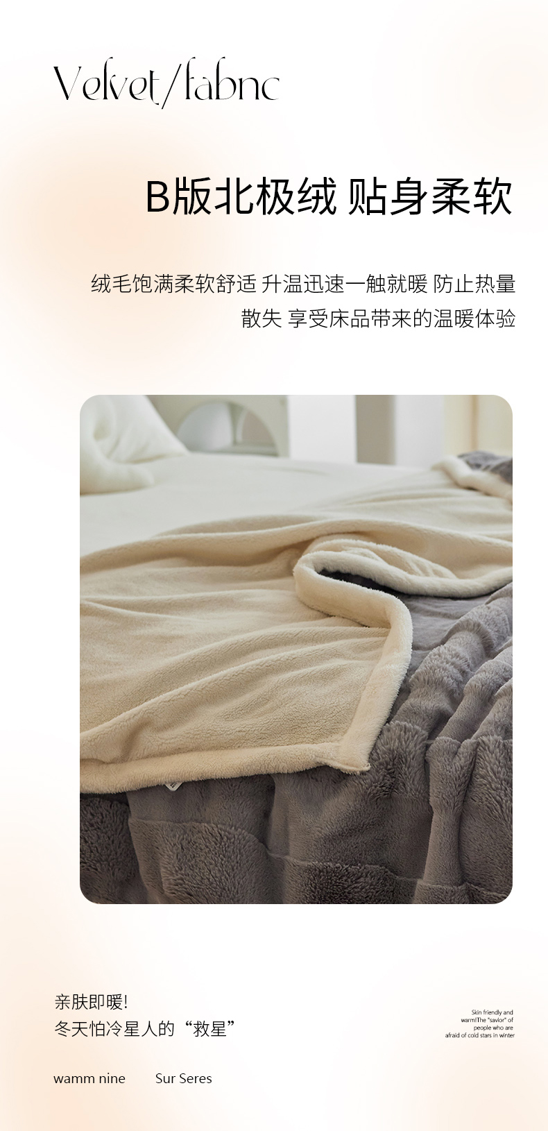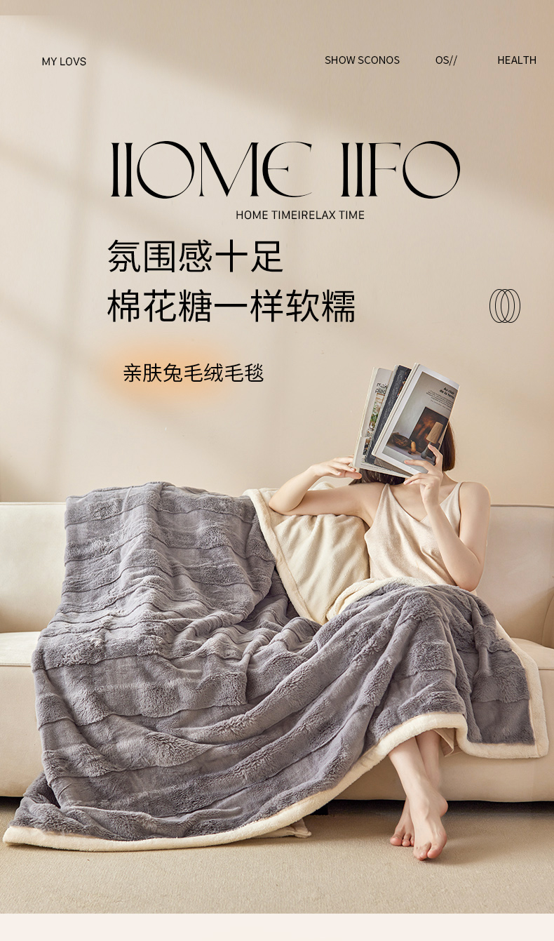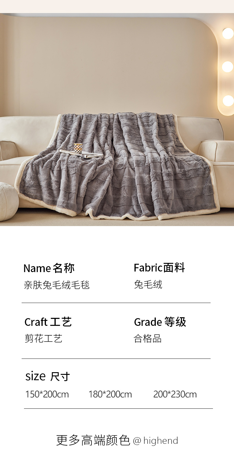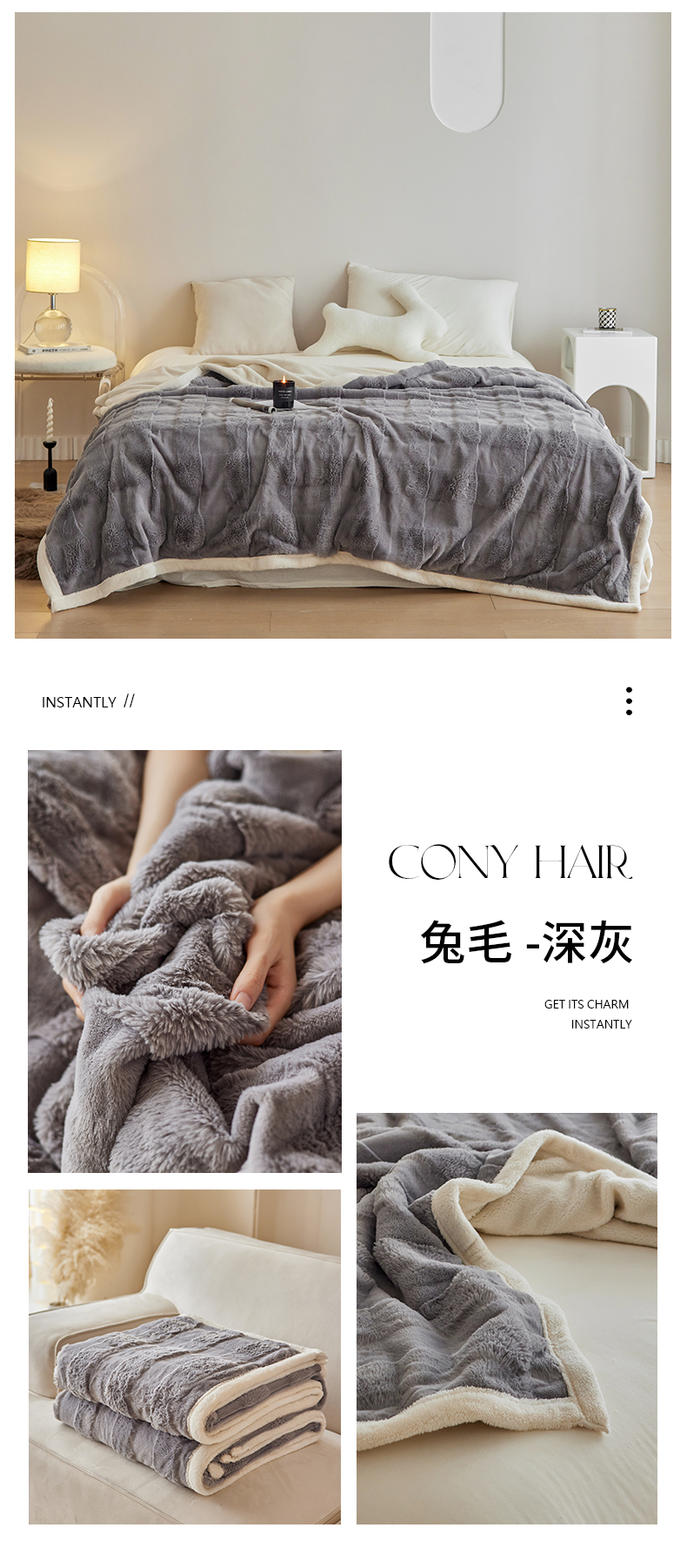 商品名称:铭动家纺 2023新款顺滑柔软亲肤兔毛绒北极绒毛毯 深灰