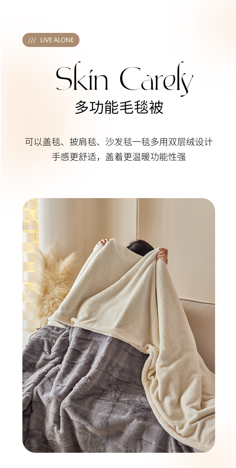 (总)铭动 2024新款雕花绒保暖毯-悠若毛毯,粉,卡其,蓝,绿