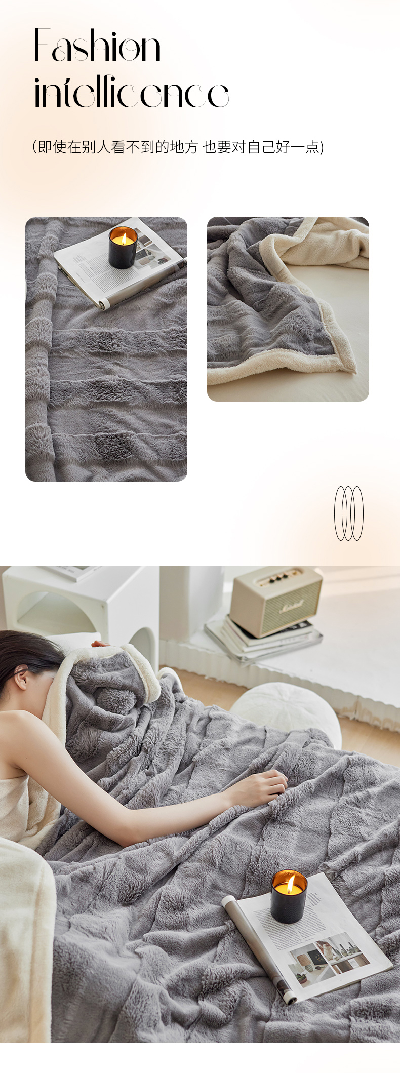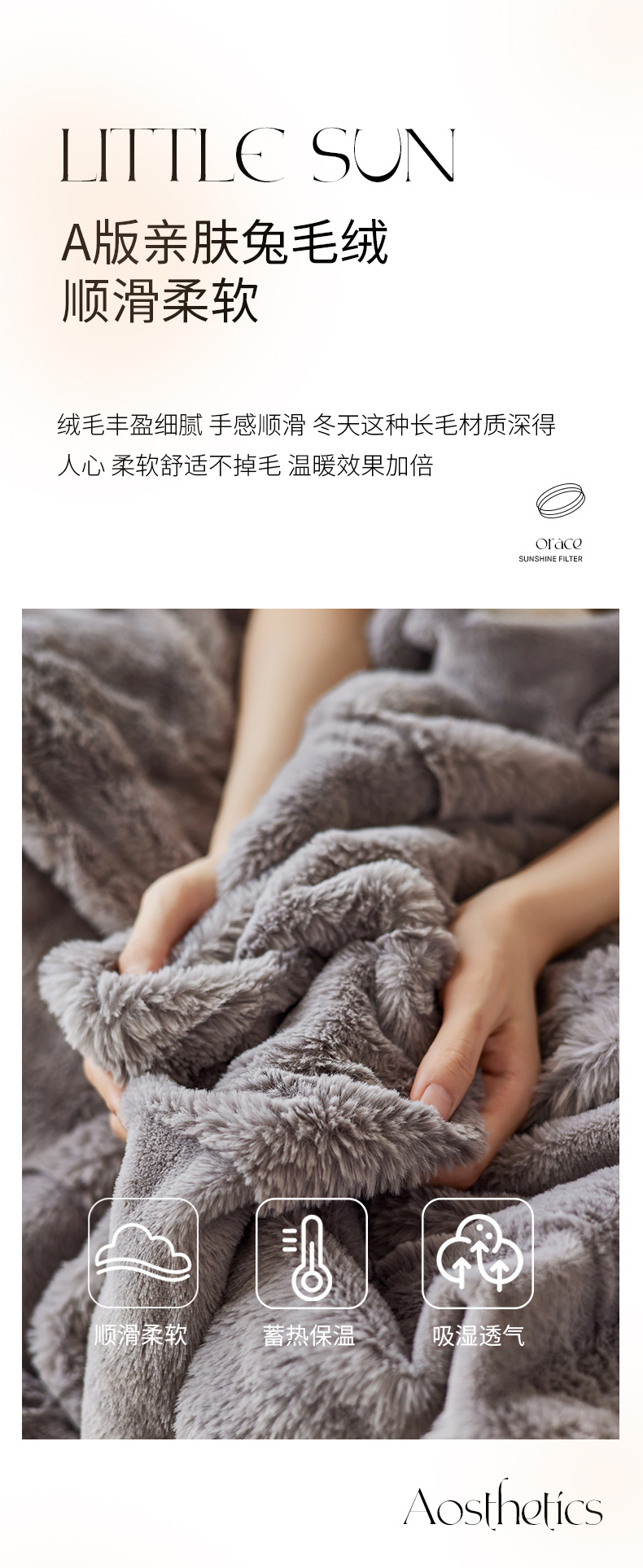 铭动家纺 2023新款顺滑柔软亲肤兔毛绒北极绒毛毯 深灰