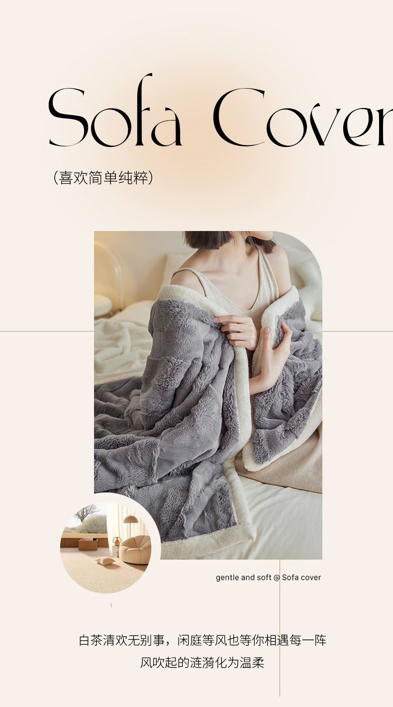 (总)铭动家纺 2024新款牛奶绒拼接款纯色保暖毯,粉色,灰,卡其,蓝灰,米白,天蓝
