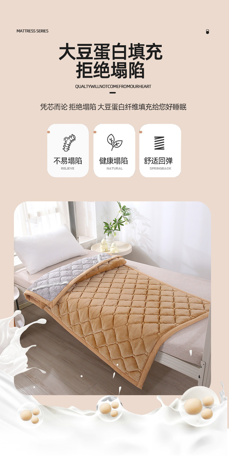 当前位置: 91家纺网 > 商品网购 > 床垫/床褥 > 普通床垫 > 东宇床垫 2025新款A类抗菌牛奶绒加厚大豆学生床垫 姜黄