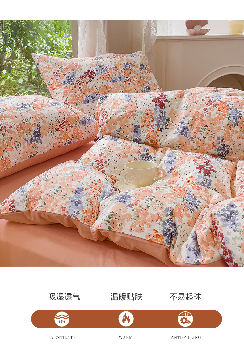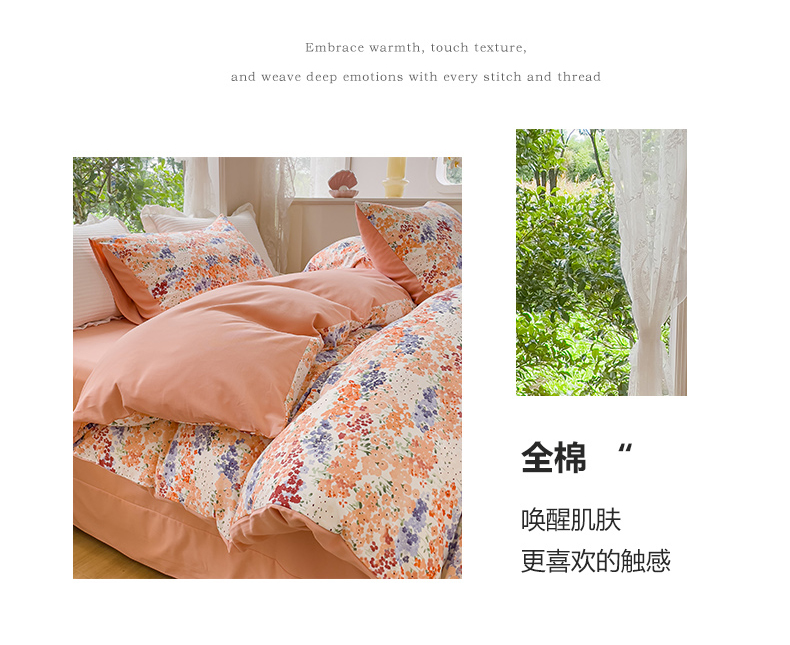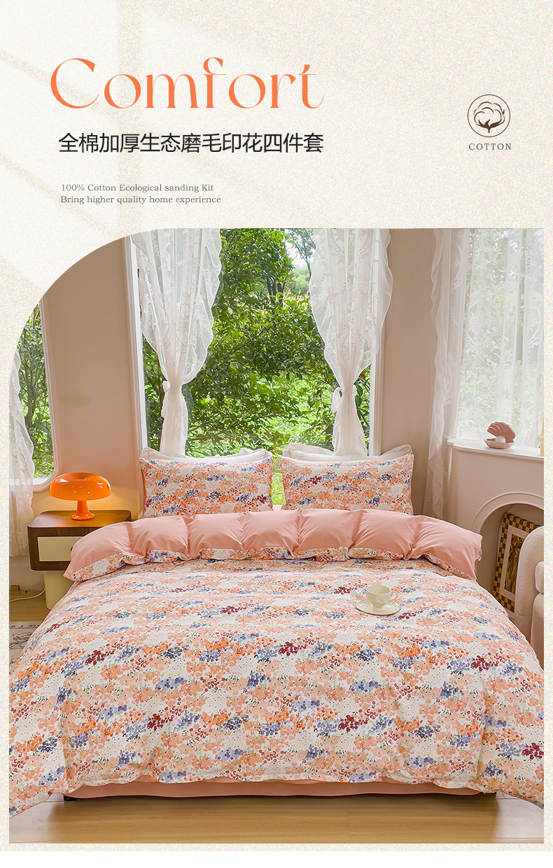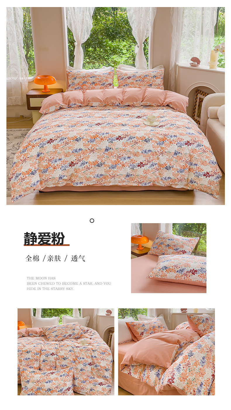 商品名称:感遇家纺 2023新款印花系列全棉生态磨毛加厚四件套 静爱 粉
