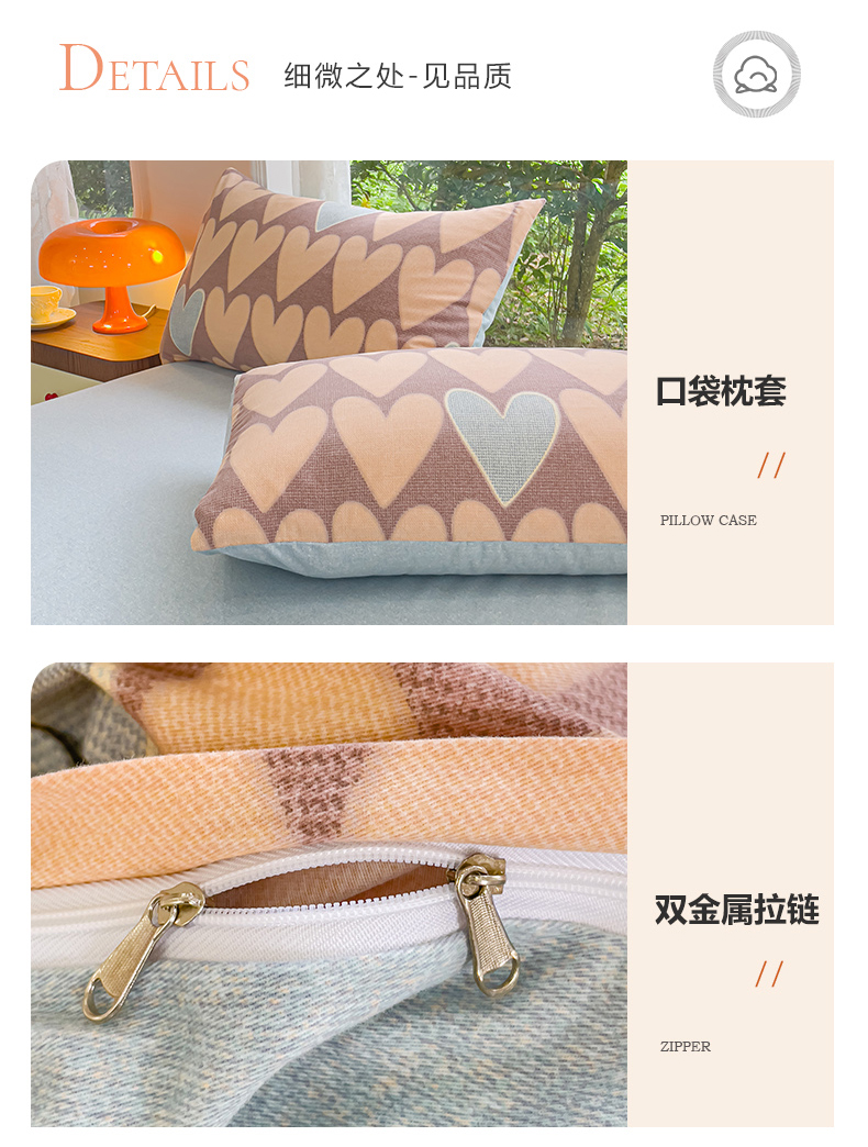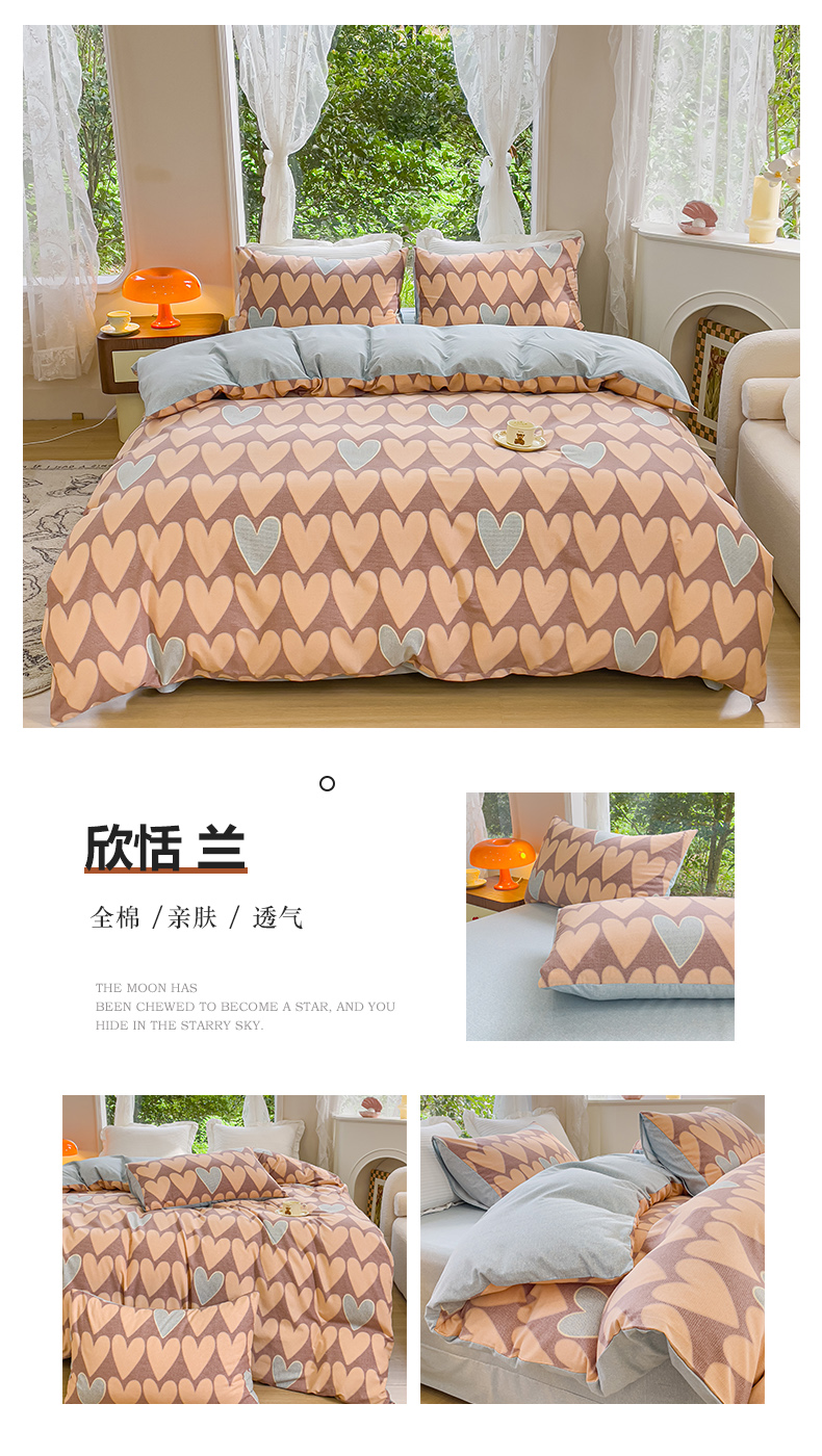 (总)感遇家纺2025新款全棉双层纱纤柔四件套,格子爱心蓝,花开半夏,滑板小狗,七彩虹,少女甜心,晚香玉,小美好,心心相印,樱桃,叠拍图仅供参考