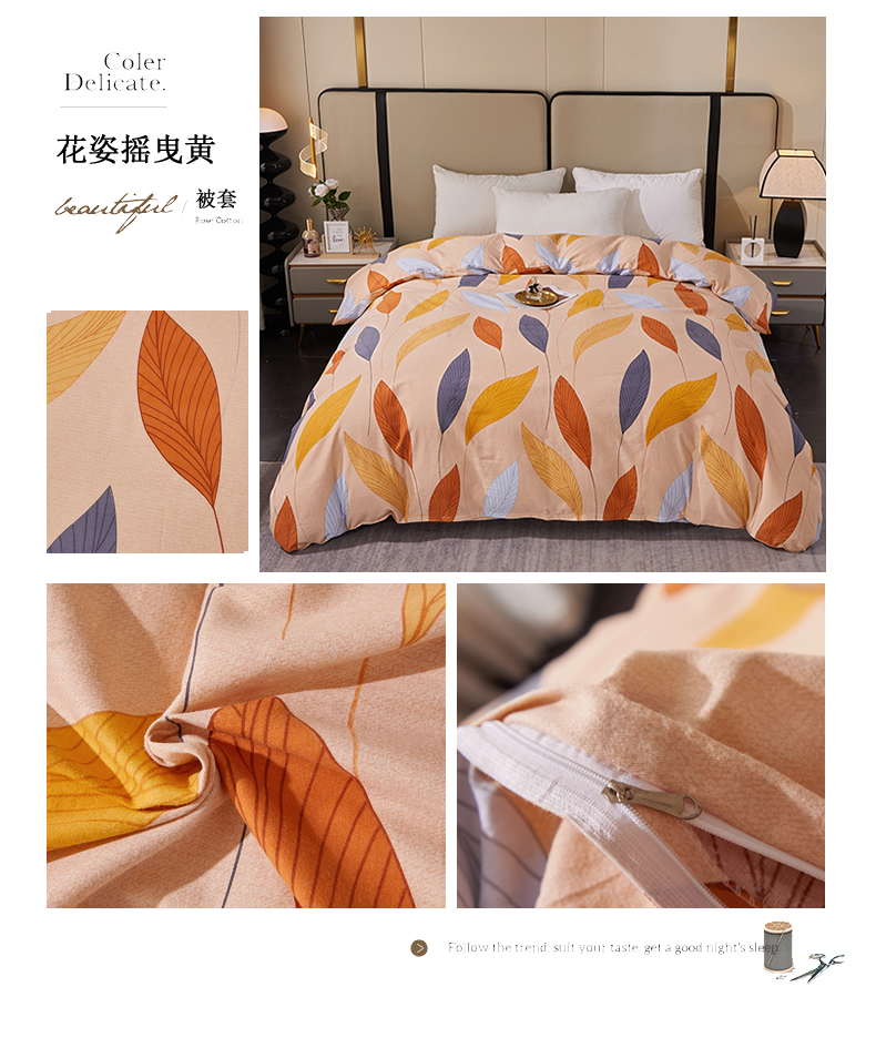 商品名称:晶缦 2023新款格林系列全棉活性磨毛单被套 花姿摇曳黄