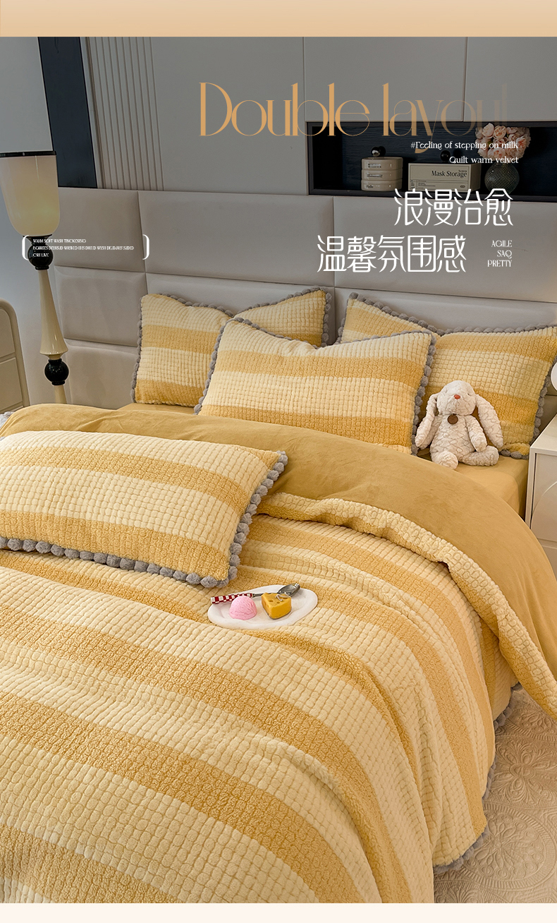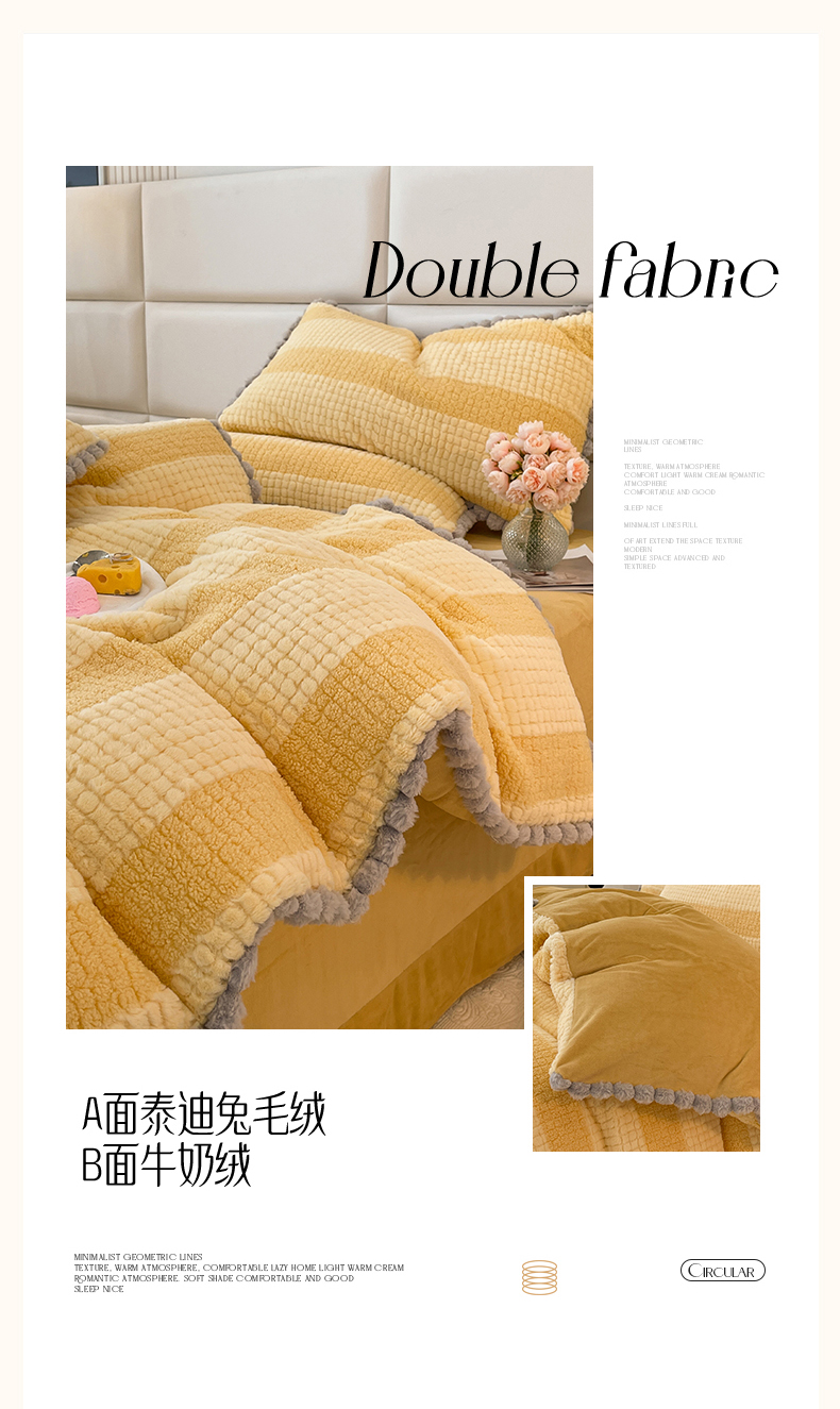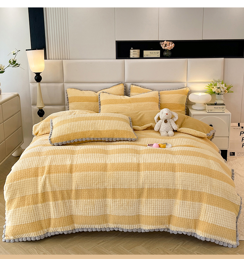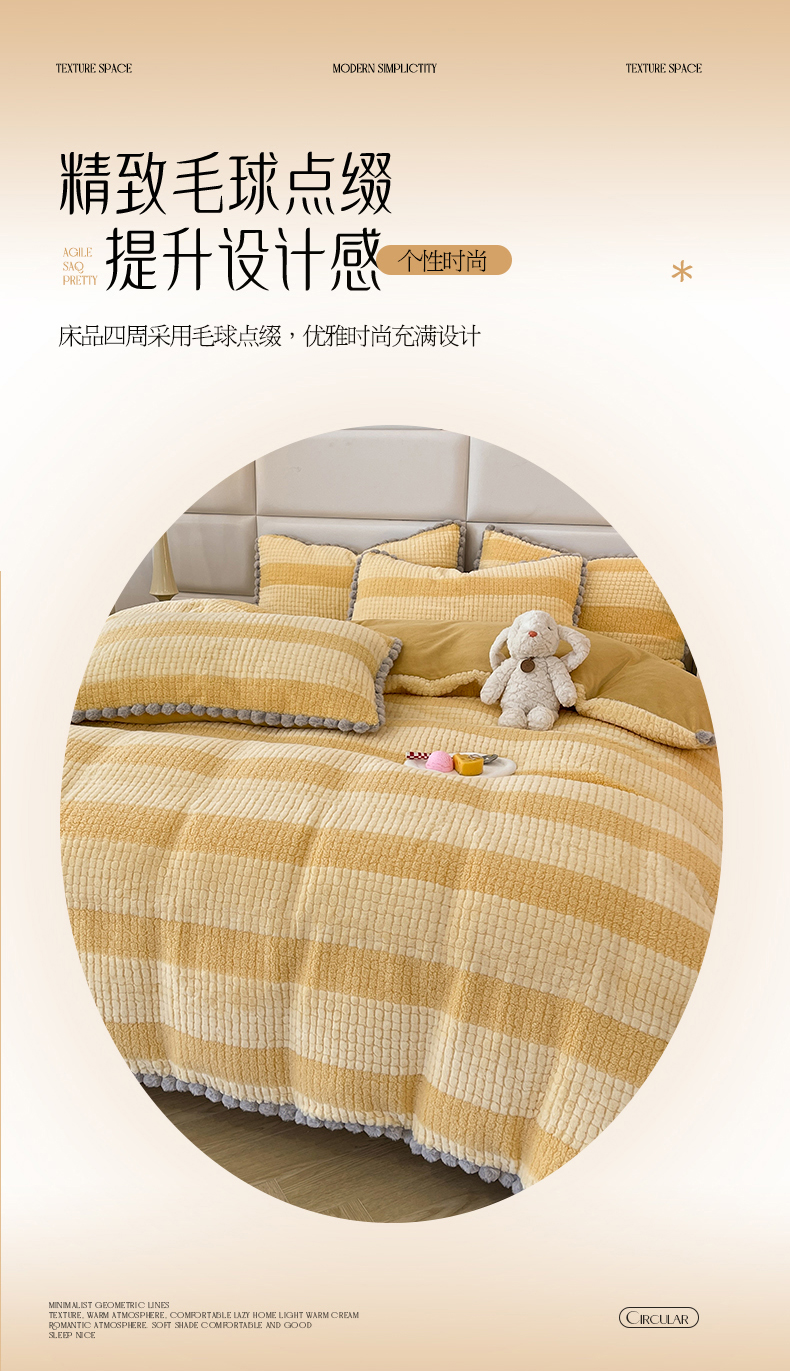 商品名称:暖洋 2024新款A类加厚泰迪绒兔毛绒纯色牛奶绒球球系列保暖四件套 暖黄