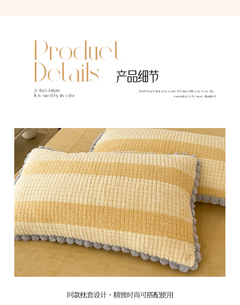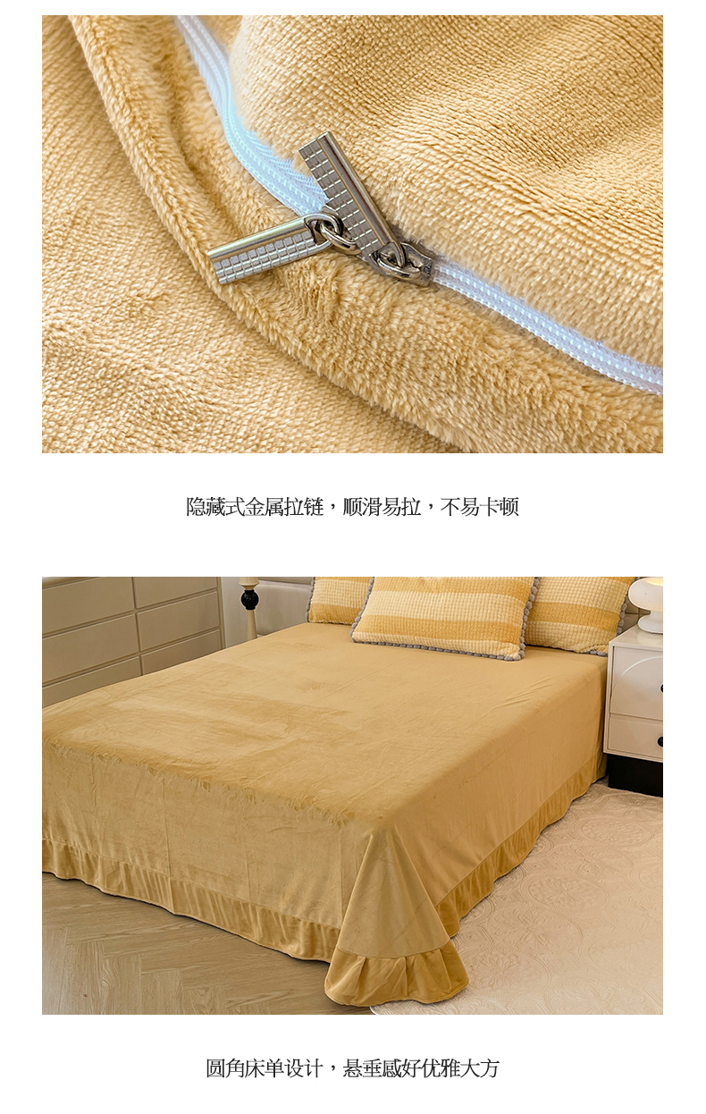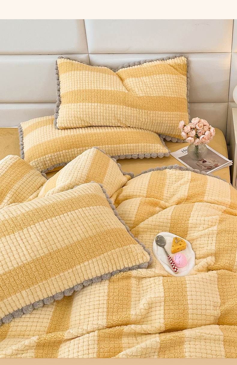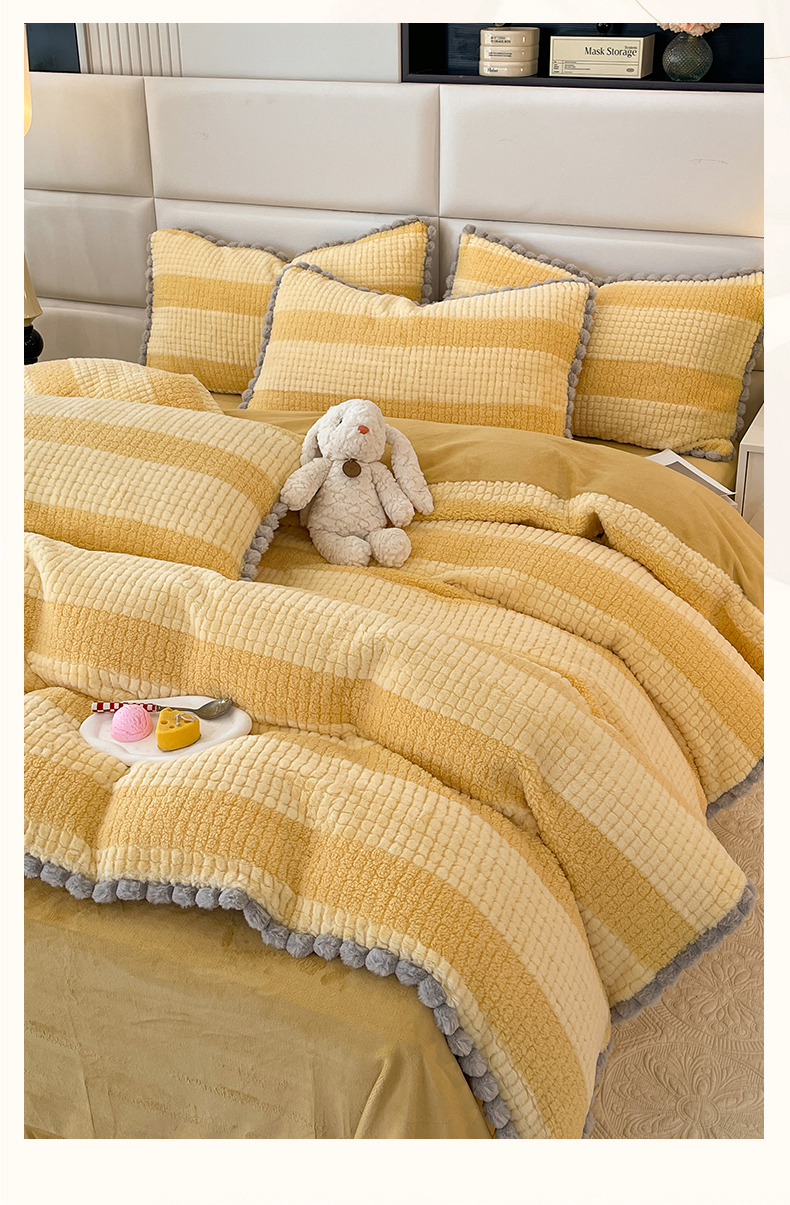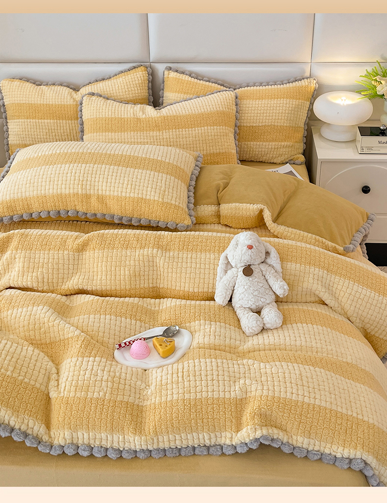 商品名称:暖洋 2024新款A类加厚泰迪绒兔毛绒纯色牛奶绒球球系列保暖四件套 暖黄