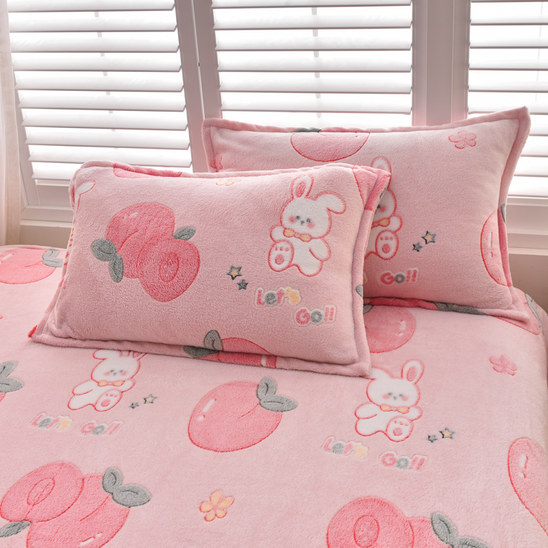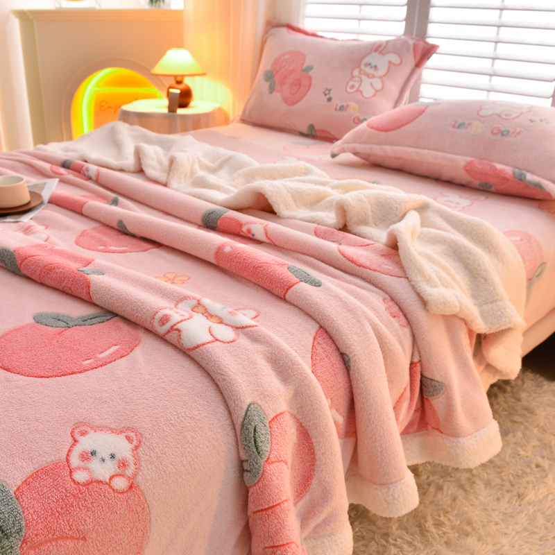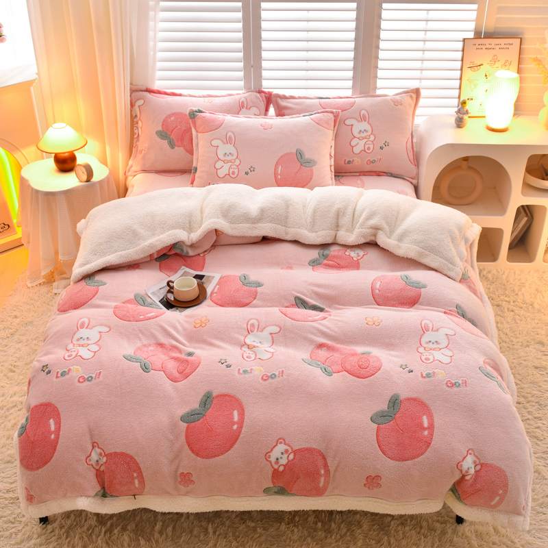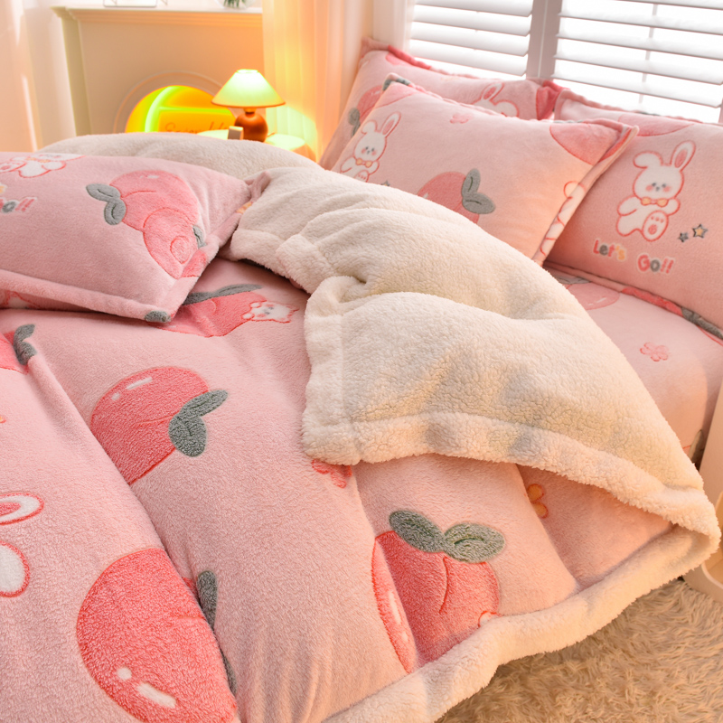 同田家纺 2023年新款雪花绒&羊羔绒四件套 快乐桃桃
