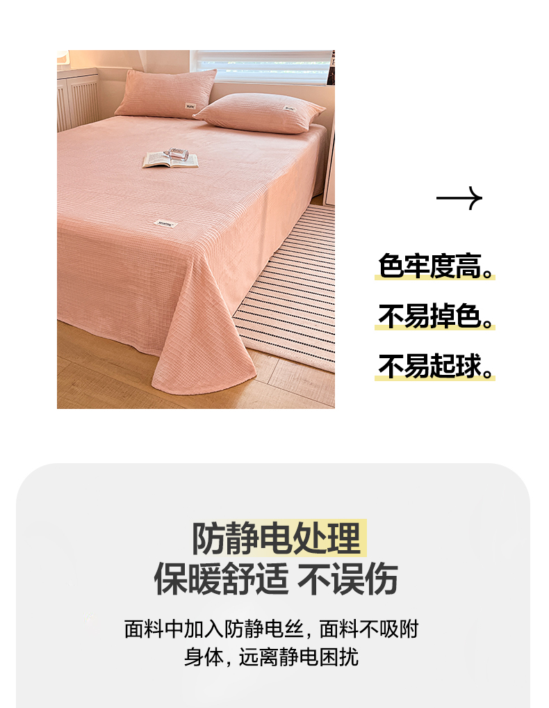 (总)莱茵 2024新款A类高克重华夫格牛奶绒单床笠