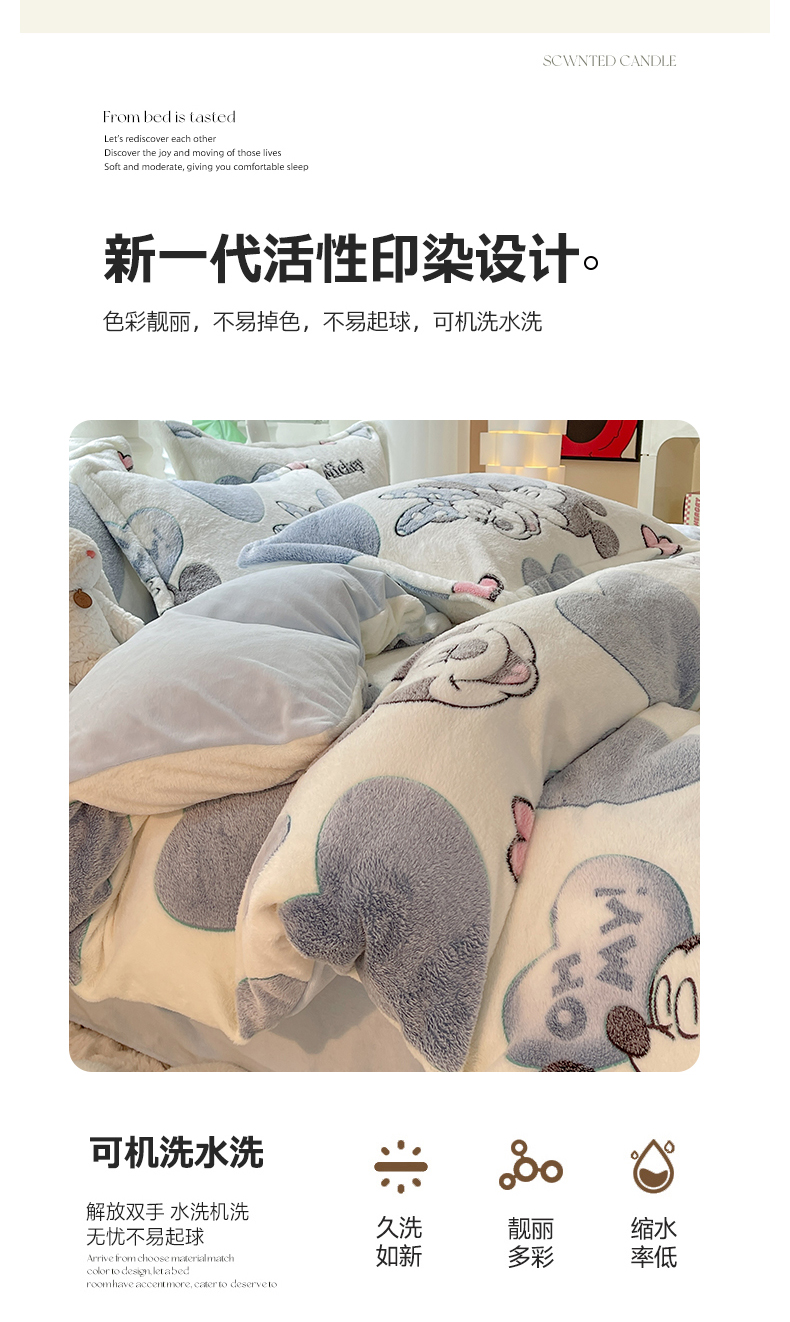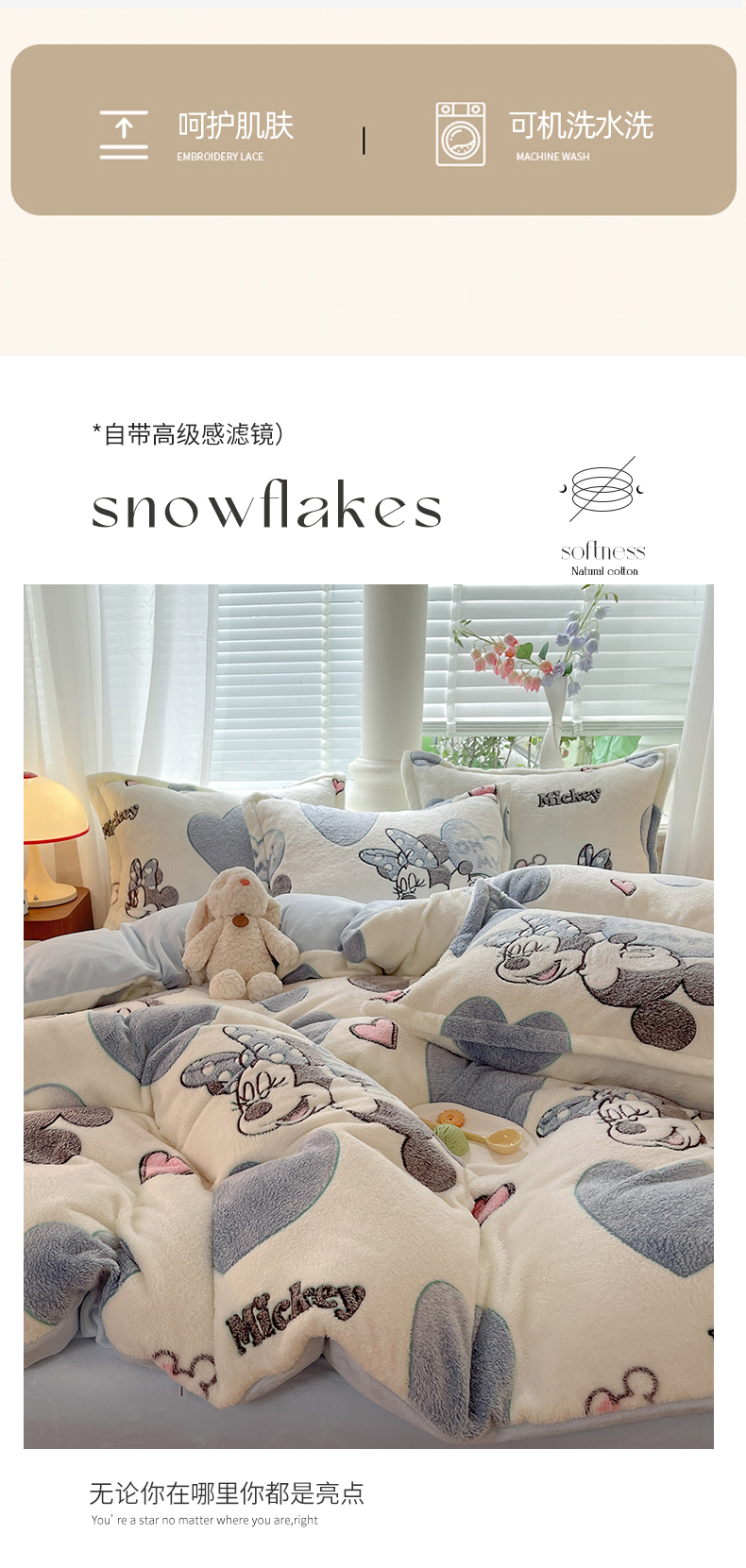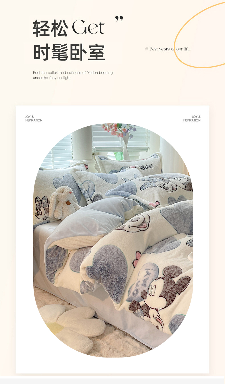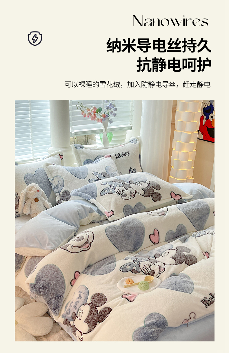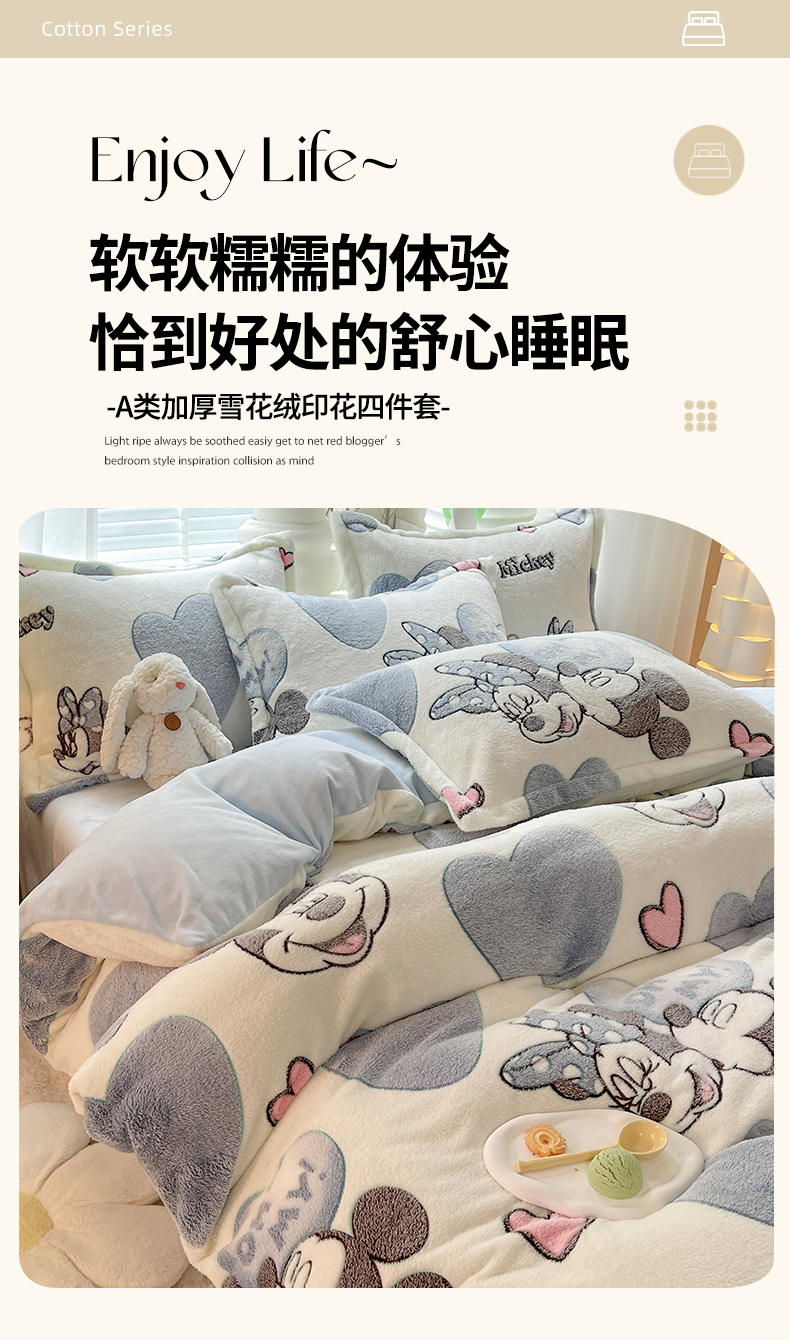 当前位置: 91家纺网 > 商品网购 > 床品套件 > 四件套 > 全棉普通四件套 > 妖妖家纺 2023新款妖妖雪花绒单品三四件套 亲亲米妮