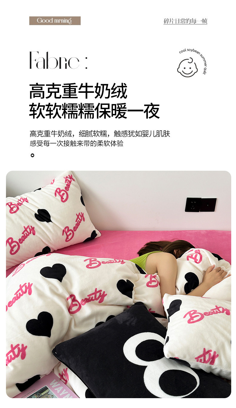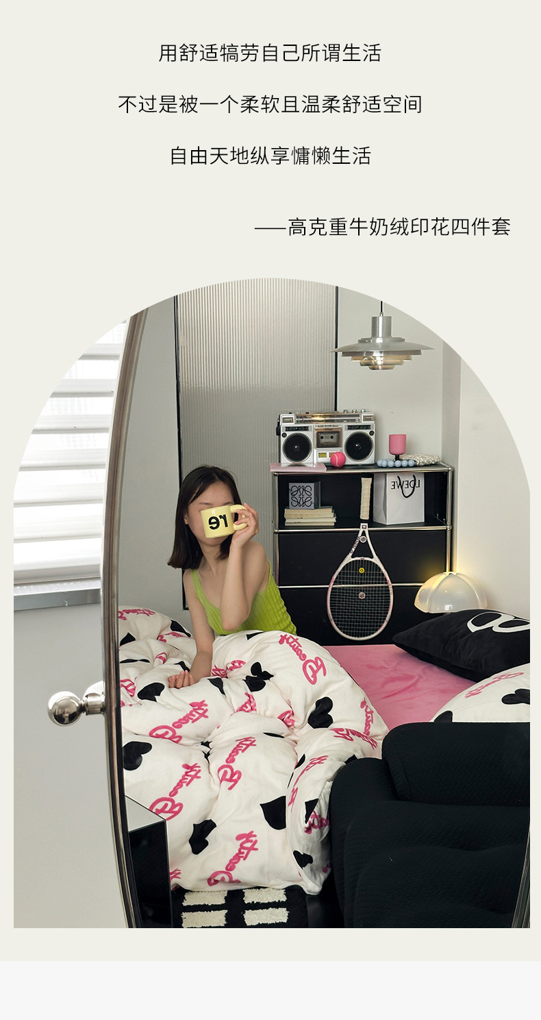 当前位置: 91家纺网 > 商品网购 > 床品套件 > 四件套 > 牛奶绒四件套 > 桃喜 2024新款甜酷系列高克重牛奶绒印花四件套 多巴胺