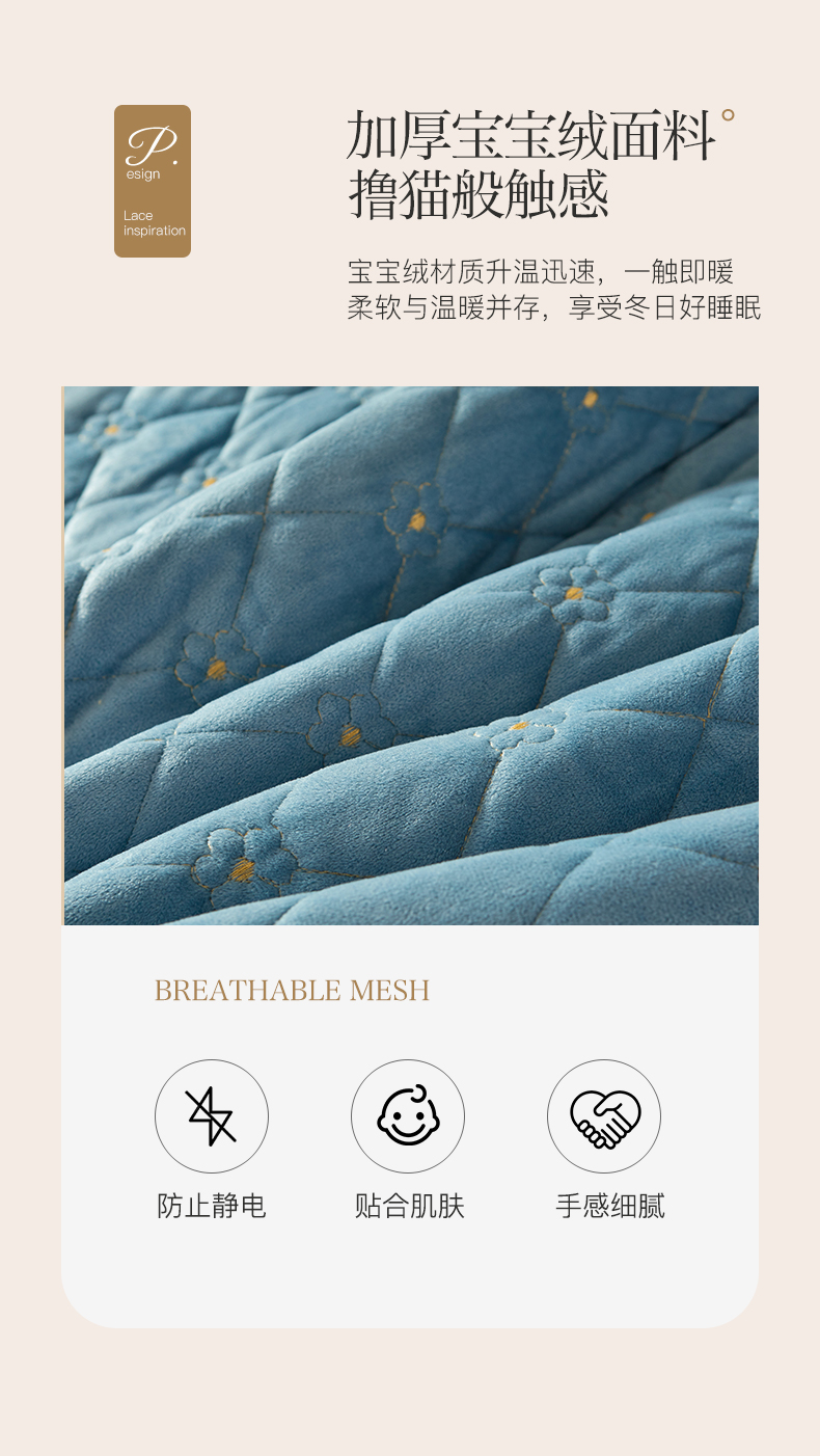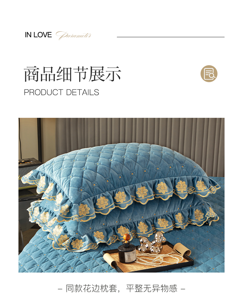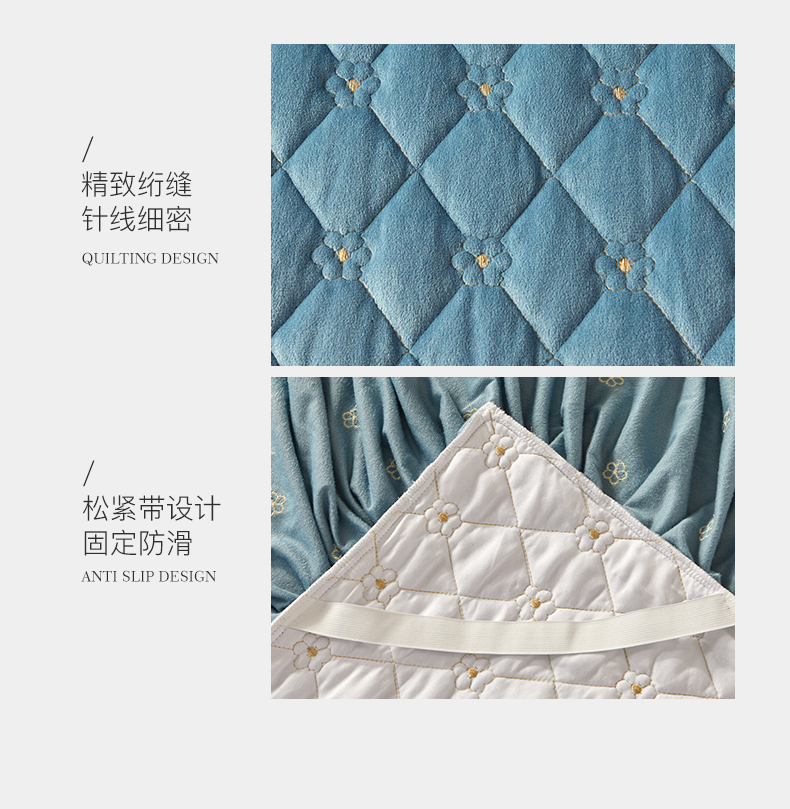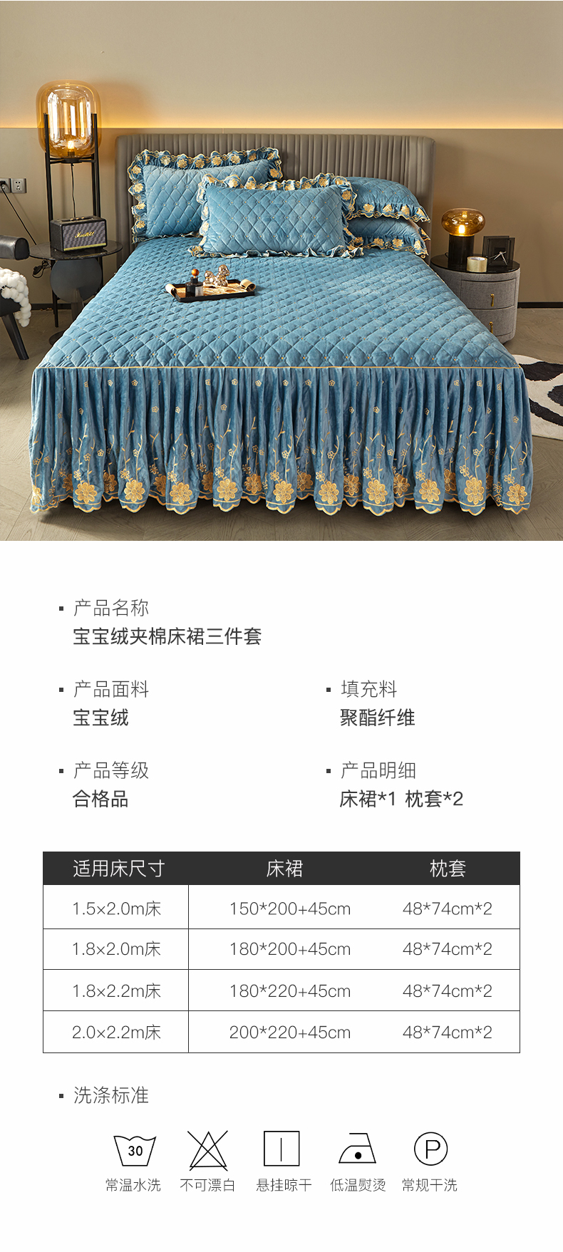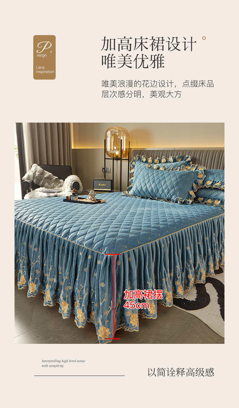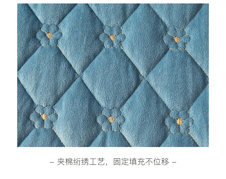商品名称:罗艺轩 2024新款花季宝宝绒全套夹棉絎缝加厚系列床裙三件套 绅士蓝