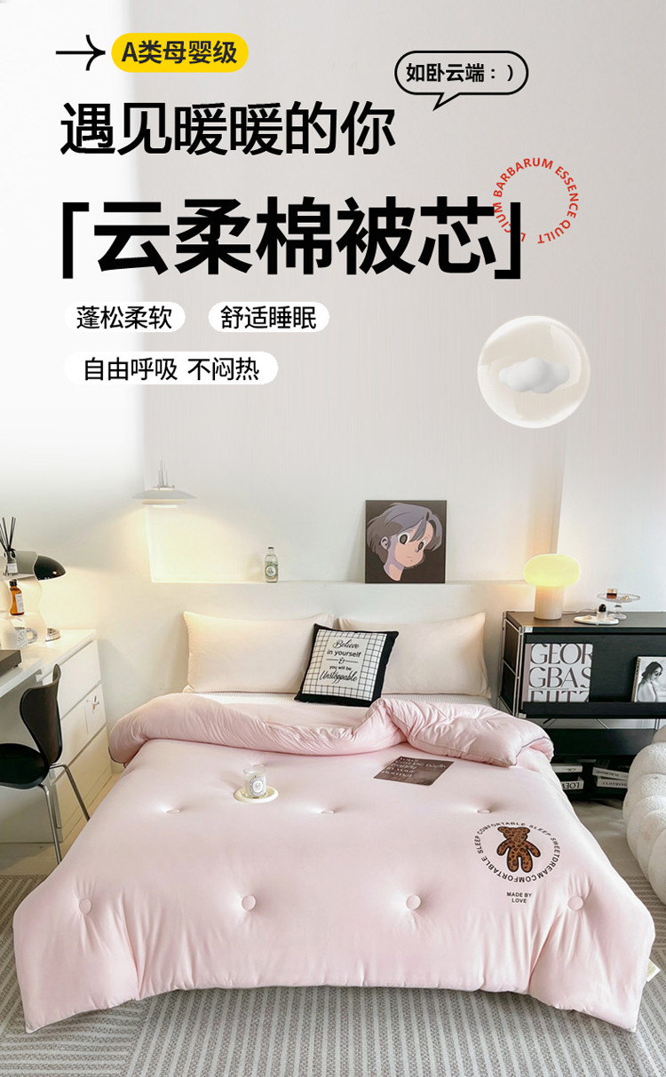 寐居 2023新款A类云柔棉被芯-烫画豹纹熊-嫩玉