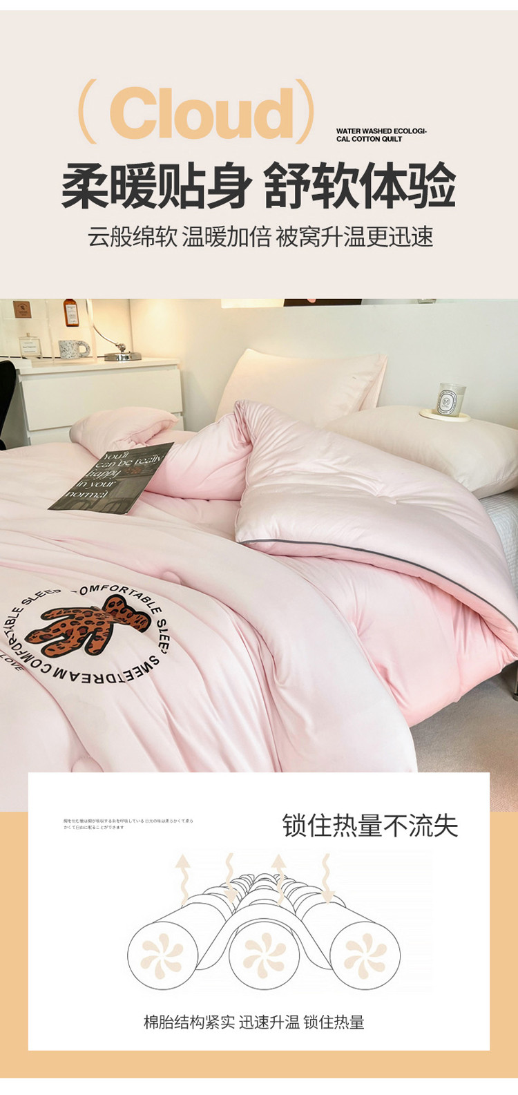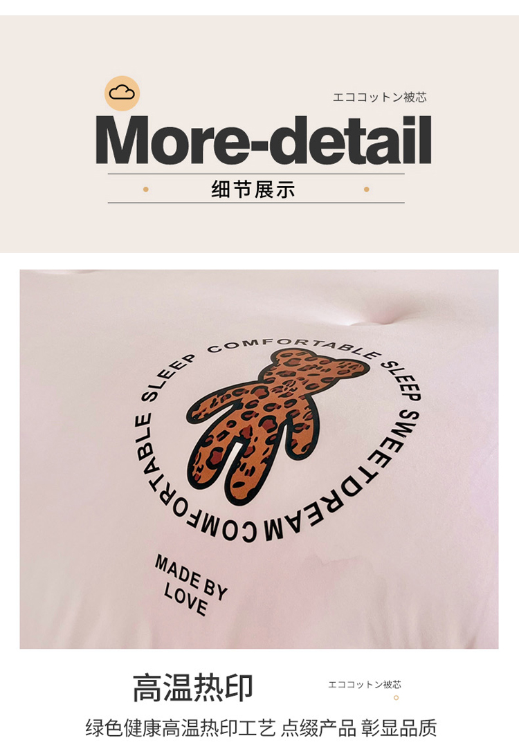 商品名称:寐居 2023新款A类云柔棉被芯-烫画豹纹熊-嫩玉