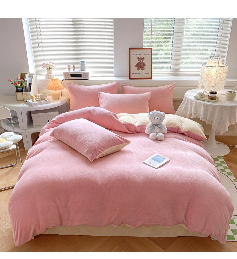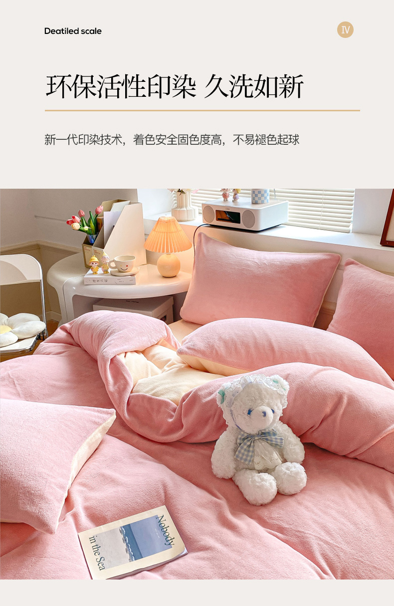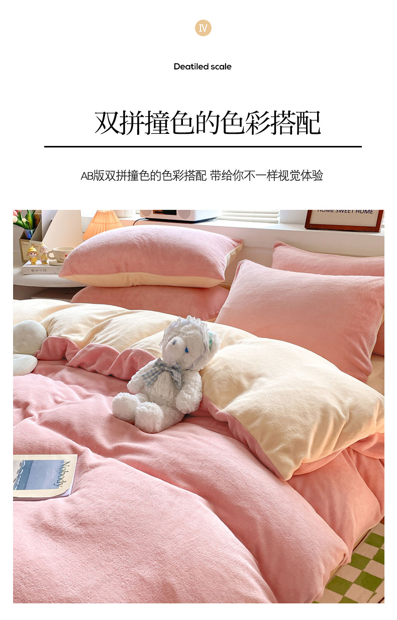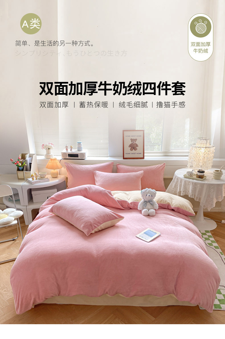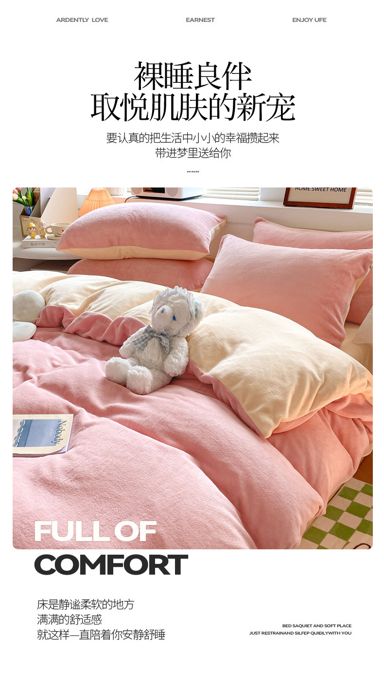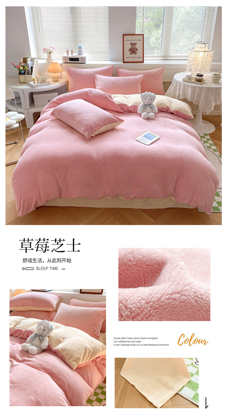 商品名称:寐居 2023新款高克重拼色牛奶绒四件套 草莓芝士